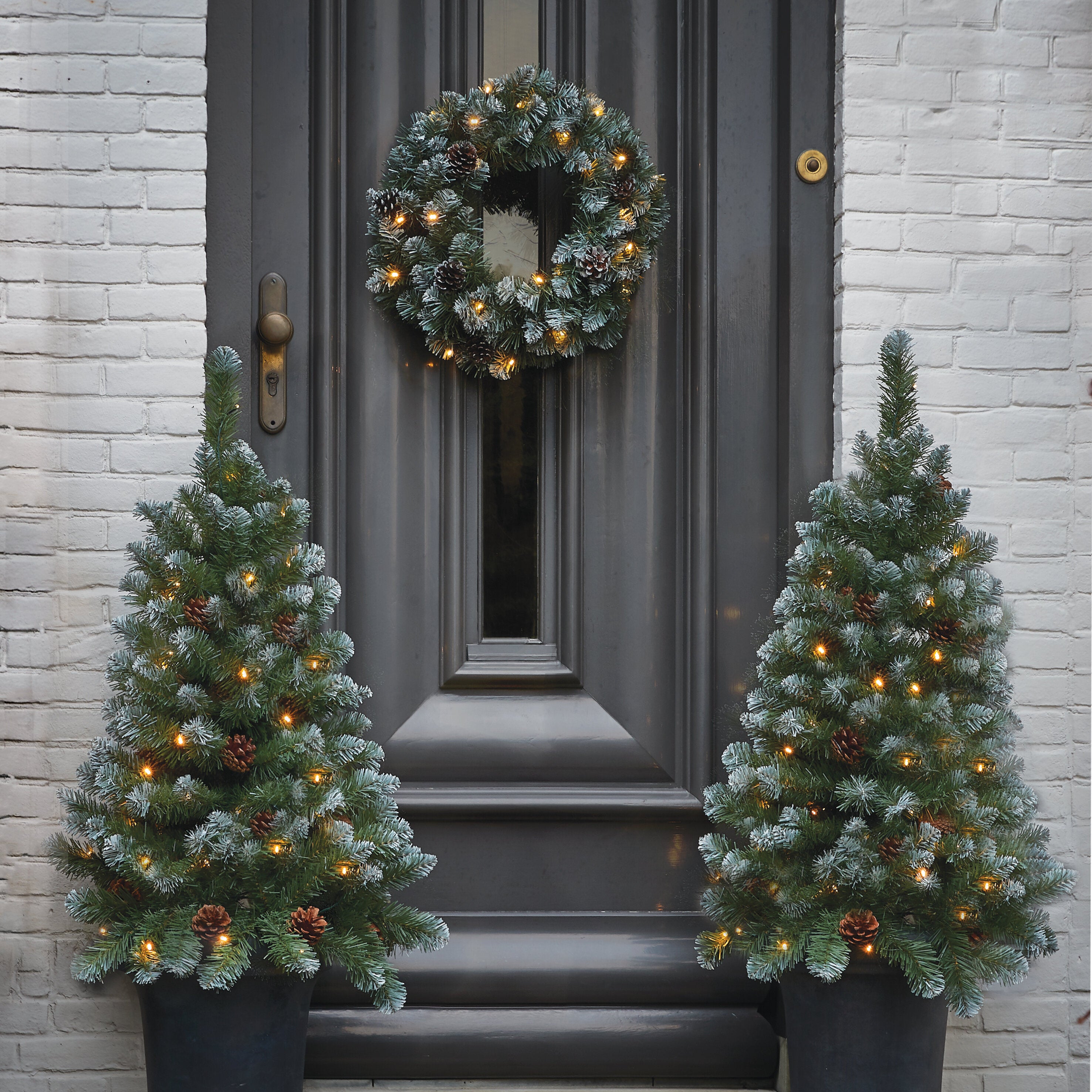 Black Box Trees Norton frosted set led werkt op batterijen groen kerstboom 2pcs 30L krans 1pcs 20L - h90xd45cm