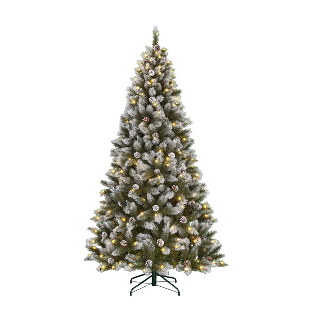 Met de Pittsfield kunstkerstboom van Black Box Trees haal je een prachtige en sfeervolle kerstboom in huis. Deze groene frosted kunstboom is voorzien van dennenappels, wat zorgt voor een extra feestelijke uitstraling. In de kerstboom zitten al 260 LED-lampjes verwerkt die een warm wit licht uitstralen, waardoor je direct een gezellige kerstsfeer creëert. De naalden zijn een mix van harde en zachte dennennaaldjes gemaakt van hoogwaardige PVC-materialen. Hierdoor ziet de boom er vol en natuurlijk uit. Dankzij de scharnierconstructie is de boom gemakkelijk op te zetten: de takken vallen automatisch op hun plaats. Je hoeft alleen de takjes nog mooi in vorm te brengen. Zo houd je extra veel tijd over om de boom te versieren! De kunstkerstboom heeft een hoogte van 230 cm en een diameter van 122 cm. Deze voldoet aan de strengste Europese wetgeving voor brandveiligheid en de aanwezigheid van zware metalen. Op de kunstkerstboom zit 5 jaar garantie en op de verlichting 2 jaar. Geniet jarenlang van een zorgeloze kerst met de Pittsfield kunstkerstboom van Black Box Trees!