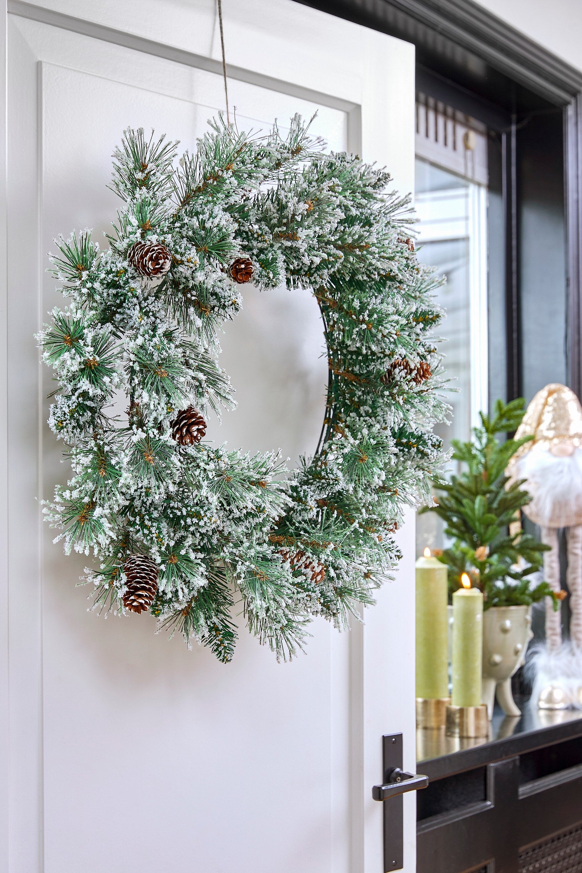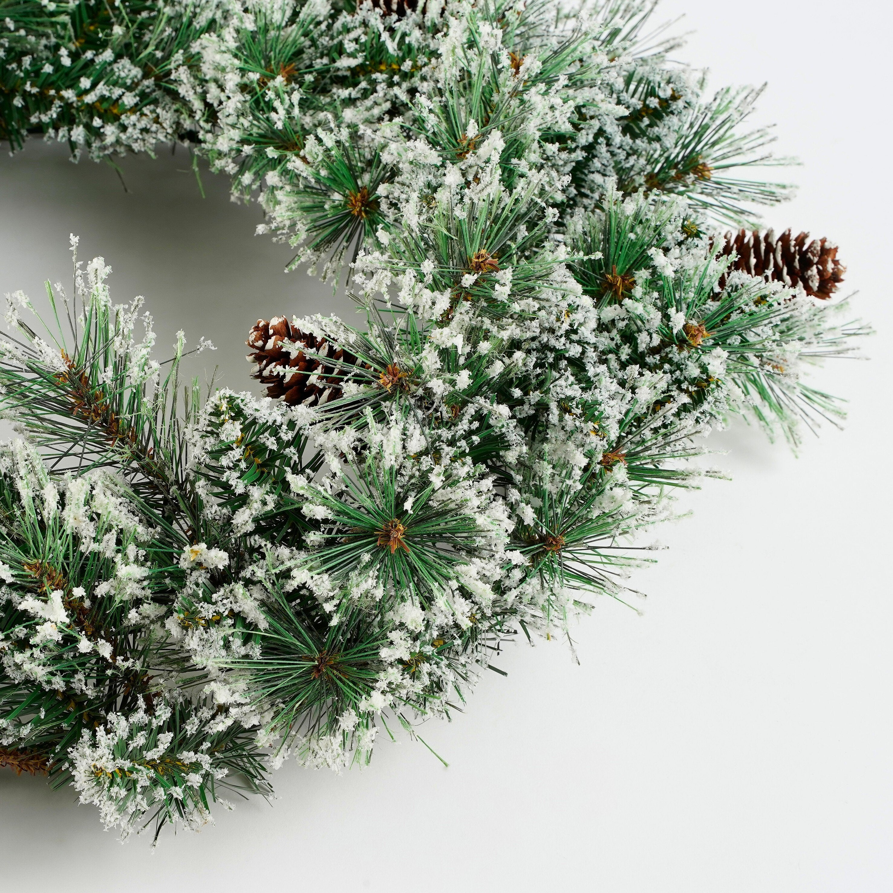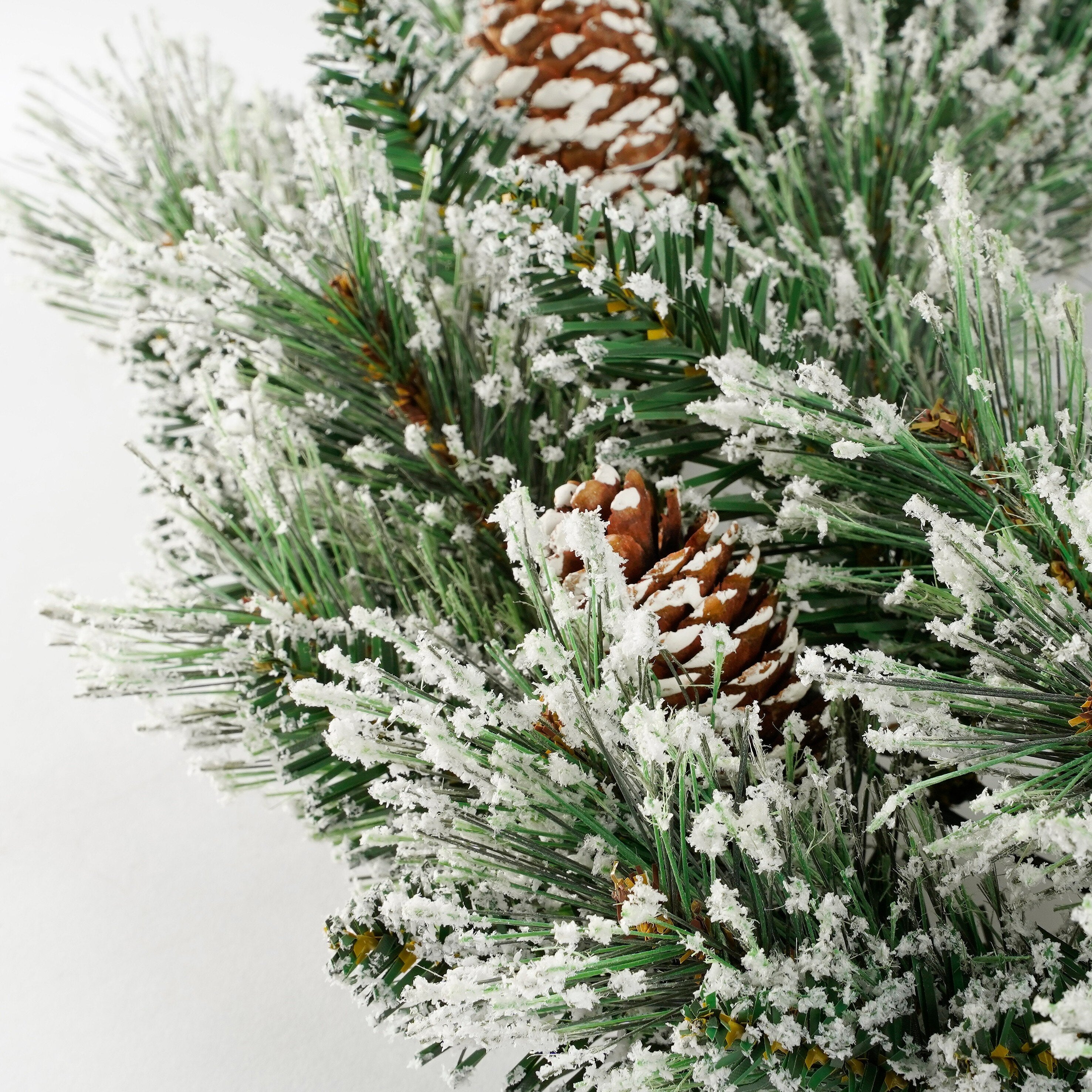 - Afgewerkt met een laagje kunstsneeuw en gedecoreerd met dennenappels