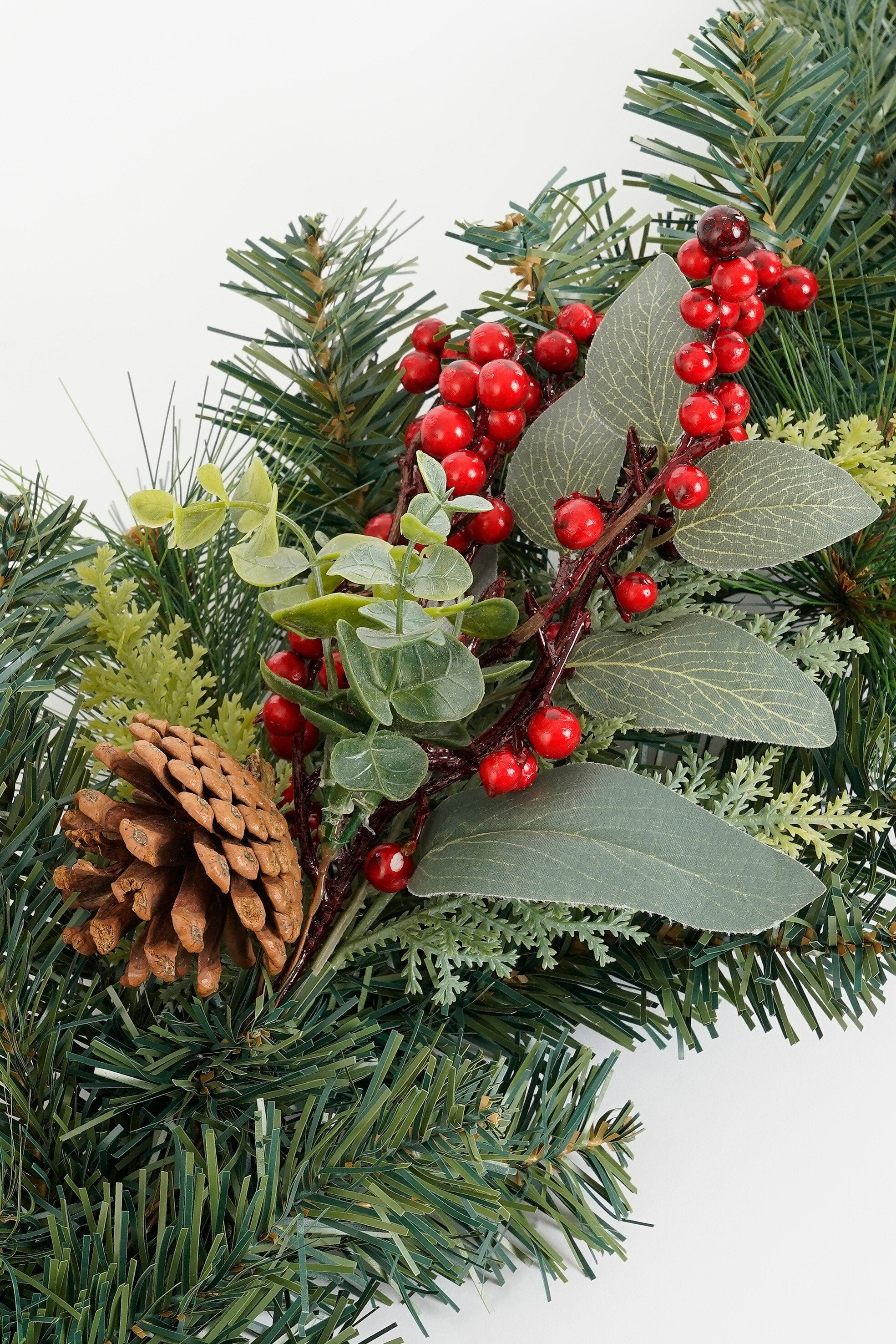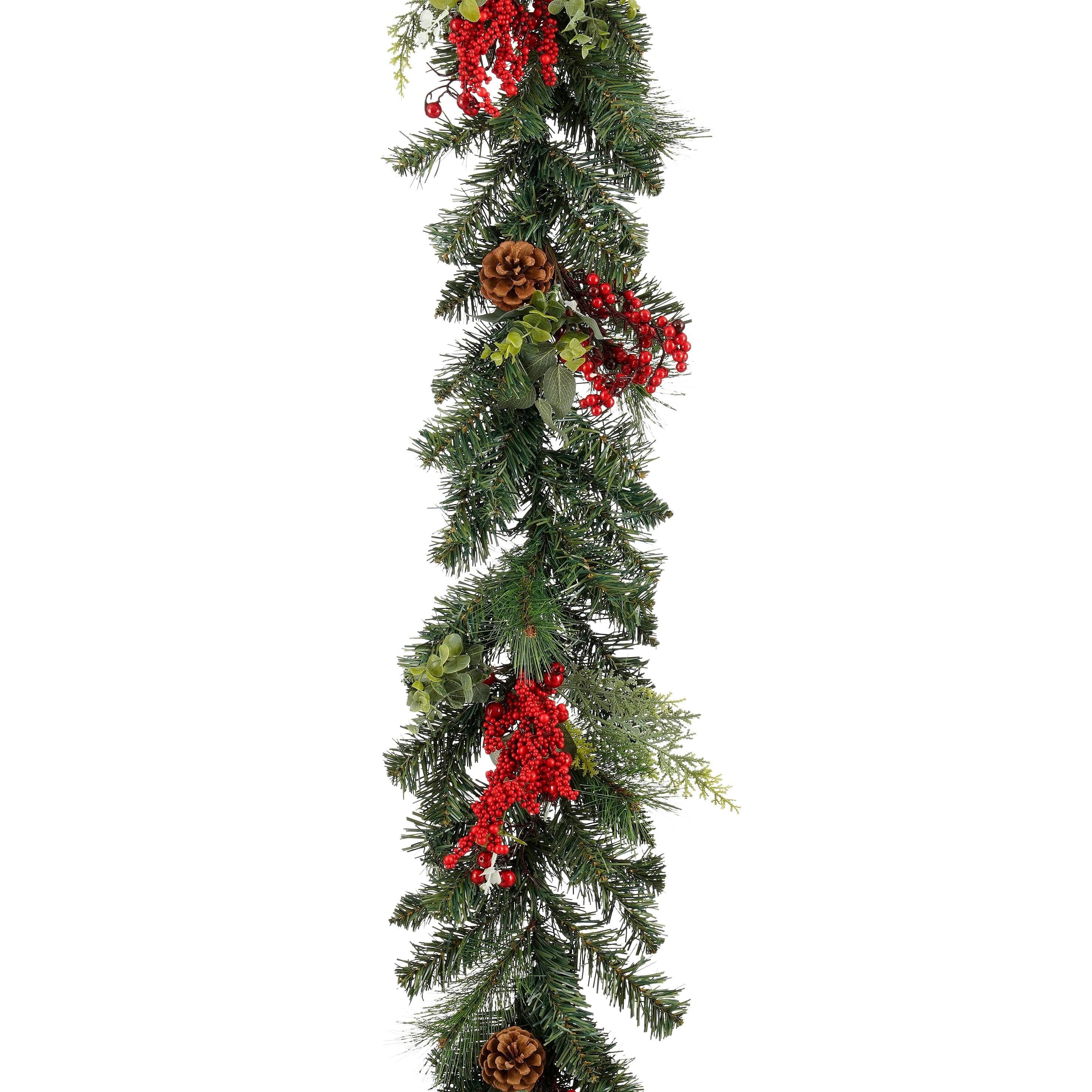 Haal de kerstsfeer in huis met de feestelijke Harvey guirlande van Mica Decorations. Deze prachtige kerstslinger van 180 cm lang heeft volle, groene naaldtakken met felrode bessen, natuurlijke dennenappels en groene bladeren. Hierdoor heeft hij een klassieke en warme uitstraling die perfect past bij een traditioneel kerstinterieur.