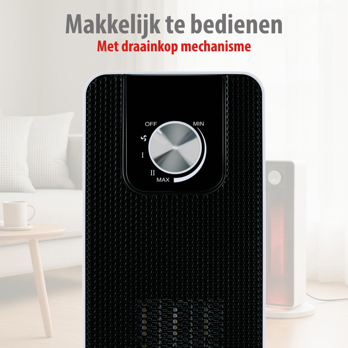 • Oscillatiefunctie: Verspreidt de warmte gelijkmatig door de ruimte dankzij de automatische oscillatie.