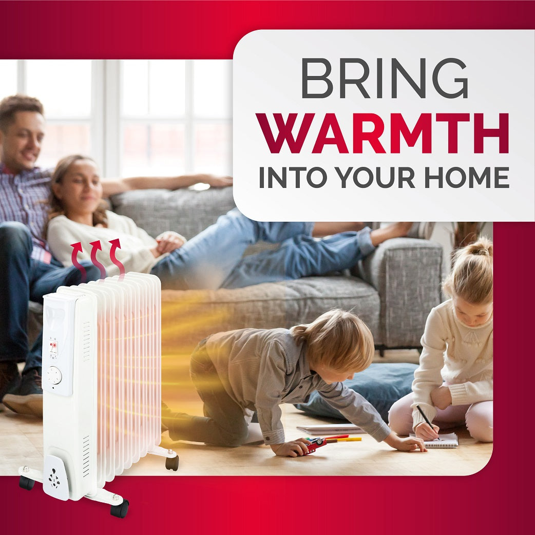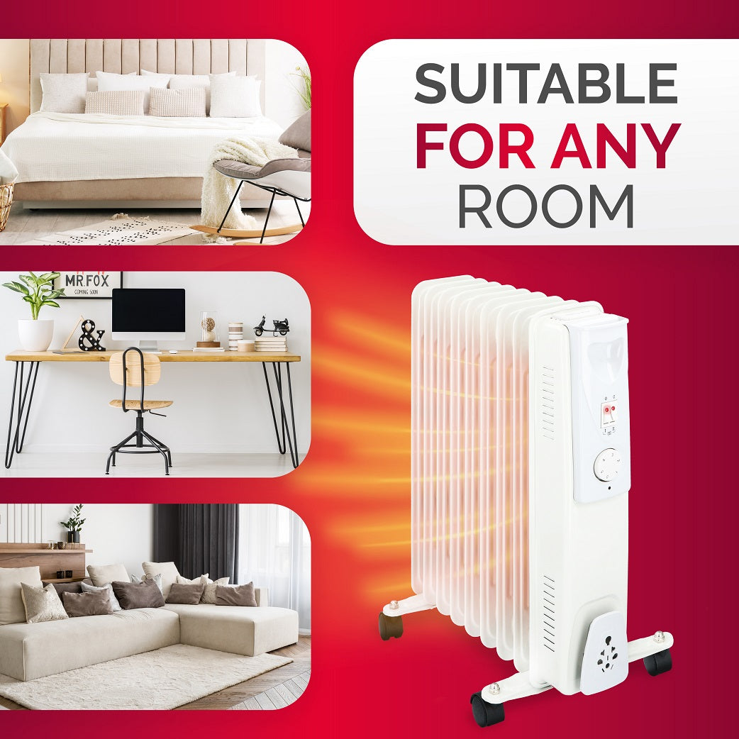 Aan de zijkant van de elektrische olieradiator vindt je de aan/uit schakelaar en een draaiknop. Met deze knop kun je de thermostaat van de elektrische verwarming zelf naar voorkeur instellen. De radiatorkachel is daarnaast ook voorzien van speciale oververhittingsbeveiliging. Hierdoor kun je hem met een gerust hart aan laten staan.