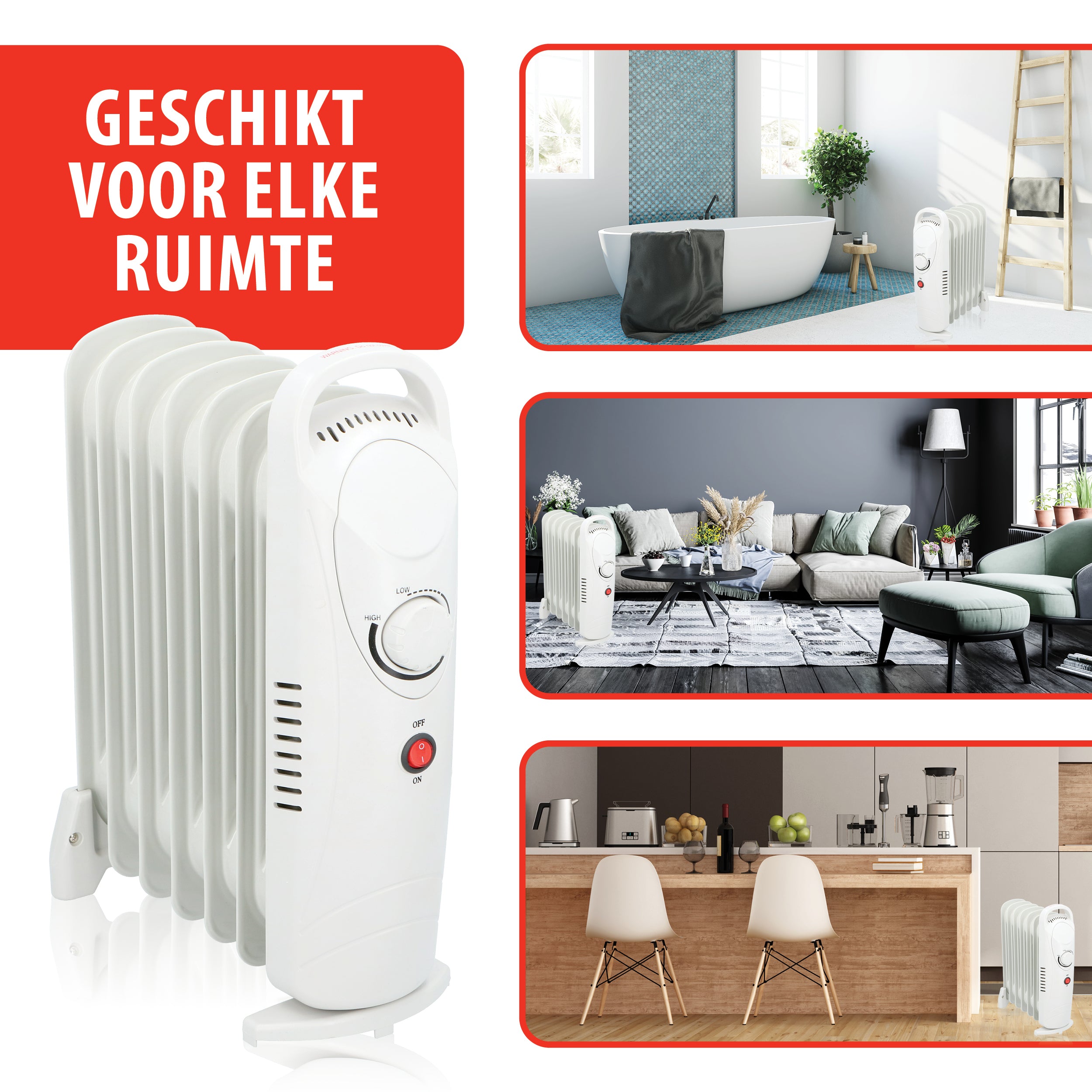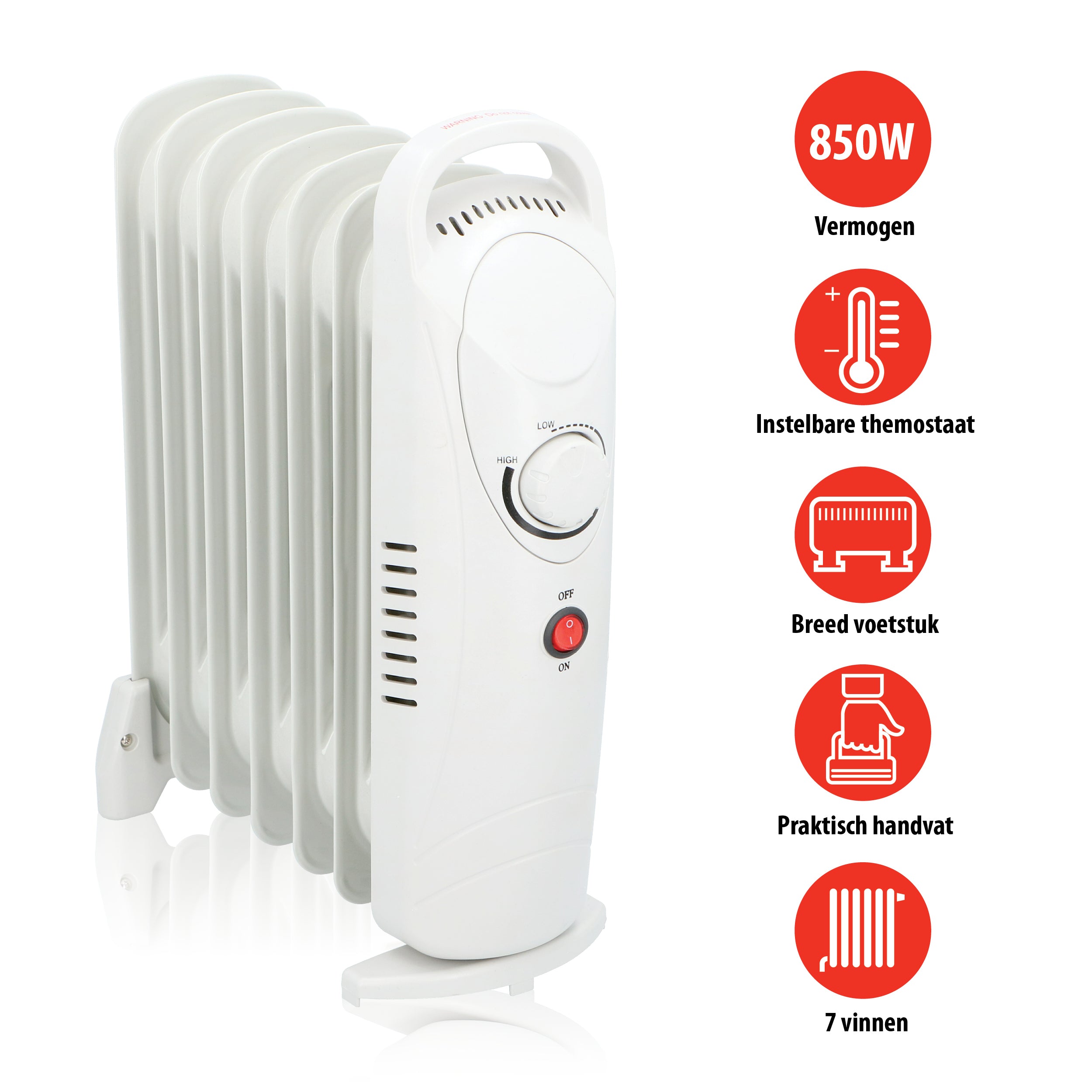 Een olieradiator lijkt qua vormgeving op een gewone radiator die deel uit maakt van de cv in huis. Het verschil zit hem aan de binnenkant. In plaats van water zit er 'thermo-olie in een olieradiator. Wanneer je de radiator aan zet, wordt de olie verwarmd en geeft warmte af. Door de vormgeving met 7 aparte lamellen verwarmt het kacheltje zeer effectief met een vermogen van 850 Watt.