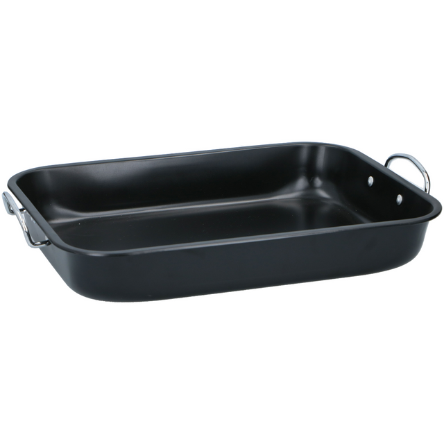 De schaal is gemaakt van metaal met een anti-aanbaklaag, zodat je de gerechten gemakkelijk uit de schaal krijgt en de ovenschaal na gebruik ook weer snel schoonmaakt. Voor een lange levensduur was je de schaal met de hand af in een lauwwarm sopje.