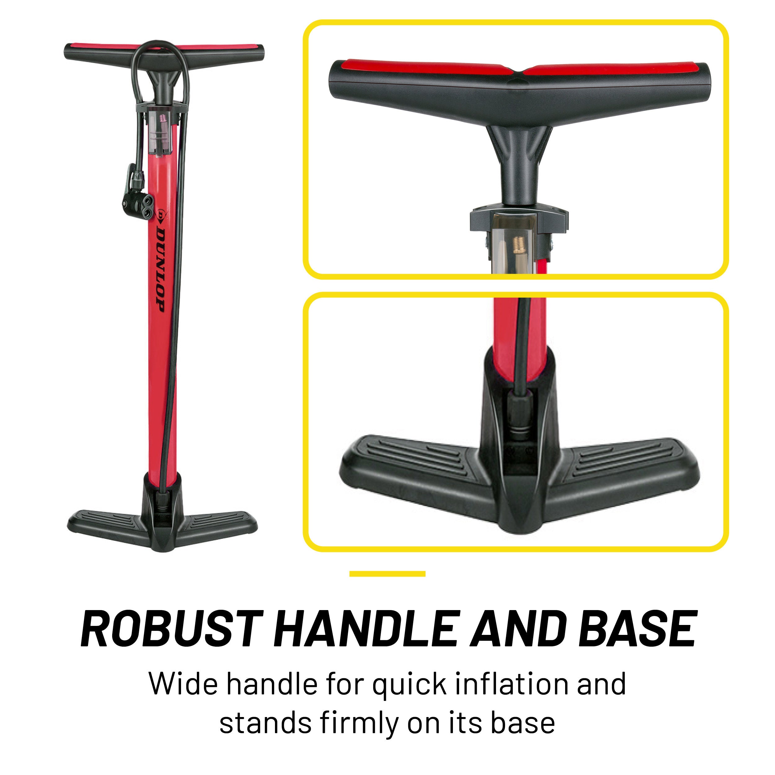 Met deze fietspomp van Dunlop kun je dankzij de 3 meegeleverde ventielen je fietsbanden altijd naar wens oppompen. Fietsen gaat beter met goed opgepompte banden. Je hebt dan minder weerstand, waardoor je lichter fietst. Ook heb je minder kans op een lekke band.