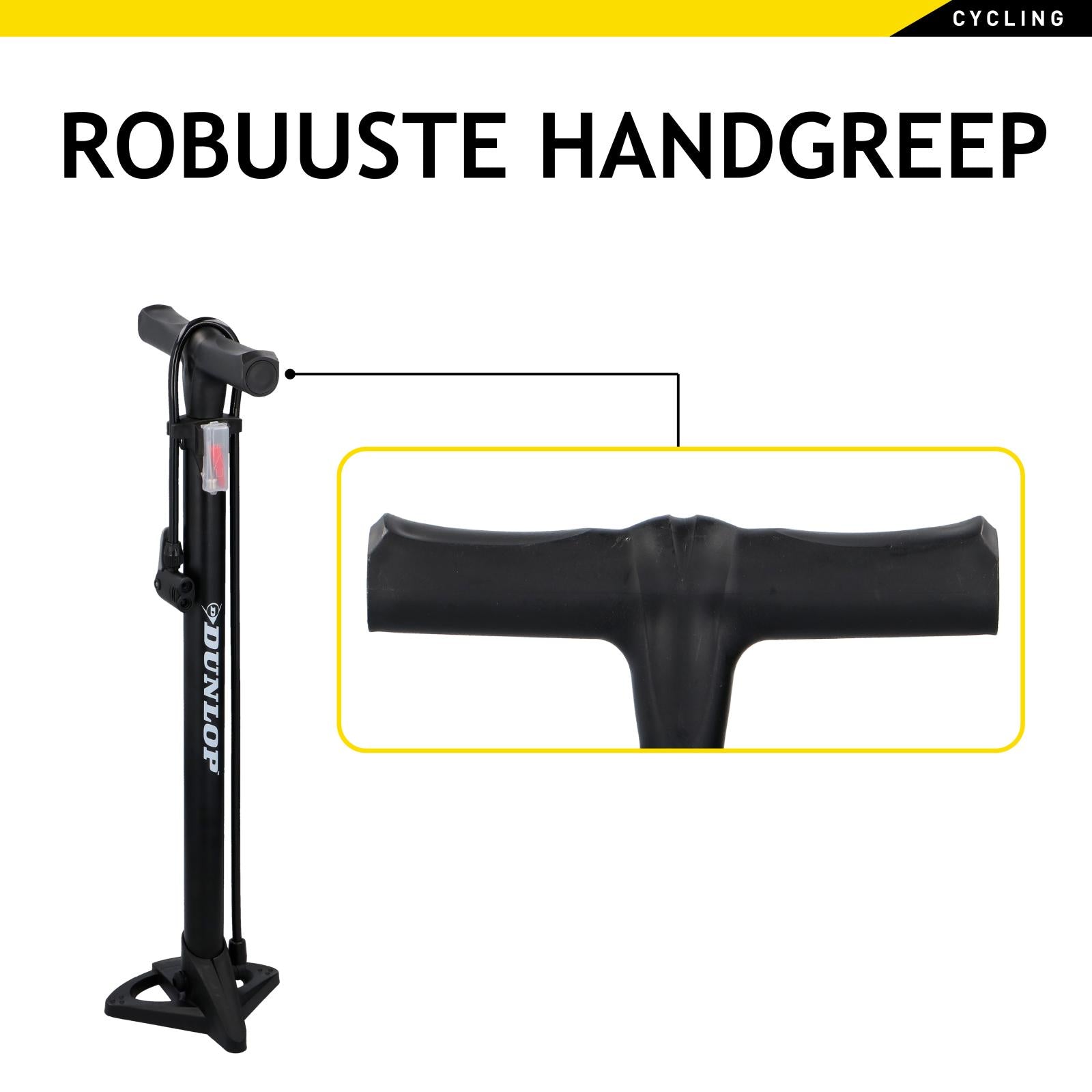 Met deze fietspomp van Dunlop kun je dankzij de 3 meegeleverde ventielen je fietsbanden altijd naar wens oppompen. Fietsen gaat beter met goed opgepompte banden. Je hebt dan minder weerstand, waardoor je lichter fietst. Ook heb je minder kans op een lekke band.