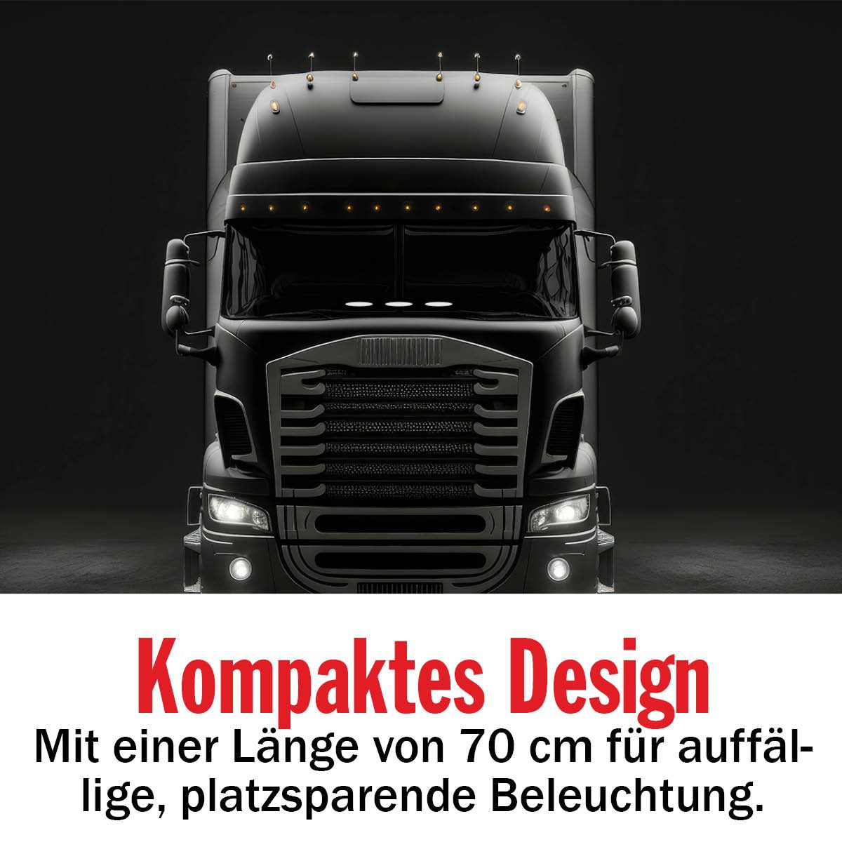 Wil je de cabine van je truck extra sfeer geven of het interieur van je camper opvrolijken? Met deze interieurverlichting van All Ride voeg je in een handomdraai sfeerverlichting toe. Je bevestigt de 50 centimeter lange strip heel gemakkelijk met de 2 zuignappen, bijvoorbeeld op je voorruit. Op de strip zitten in totaal 9 LED's, verdeeld in groepjes van 3. De plug doe je in de aansteker (12/ 24 Volt), waarna je de lamp met de bedieningsknop naar wens instelt. Kies zelf uit de 7 kleuren je favoriete verlichting: rood, groen, lichtblauw, paars, donkerblauw, geel of wit.