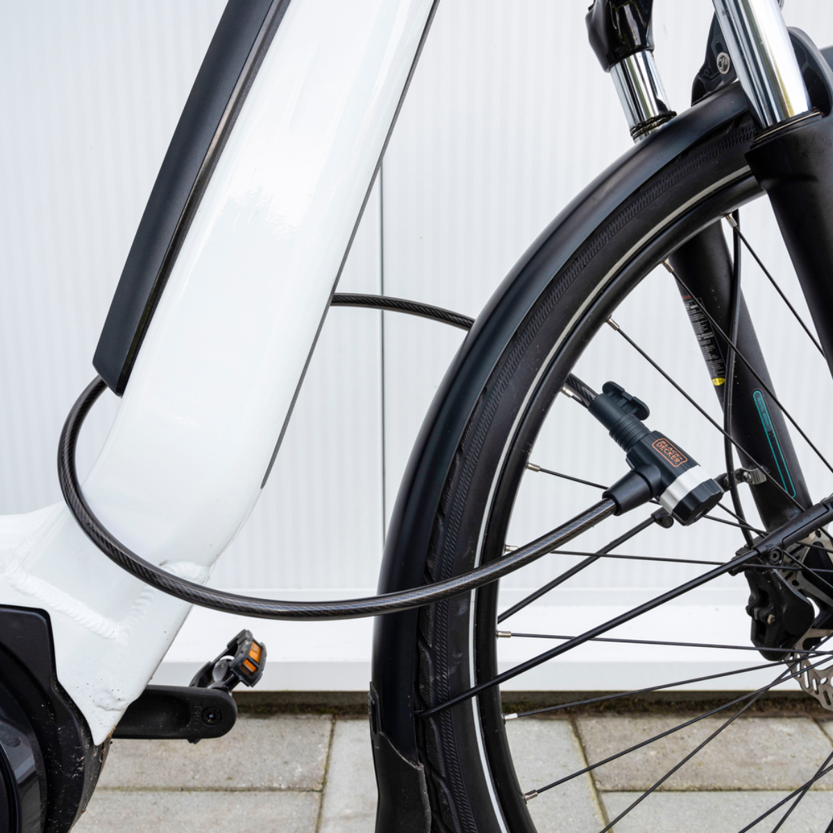 Bescherm je fiets, motor of scooter tegen diefstal met dit kabelslot van BLACK+DECKER. Het fietsslot heeft een diameter van 10mm en een totale lengte van 90 centimeter waarmee je het slot makkelijk vast kunt maken aan fietsrekken en lantaarnpalen. Daarnaast wordt het kabelslot geleverd met 3 sleutels, zodat je altijd reserve hebt. De sleutels zijn vervaardigd uit hoogwaardig messing en nylon, waardoor ze lang meegaan en een comfortabele grip bieden tijdens het vergrendelen en ontgrendelen van het slot. Het kabelslot is gemaakt van stevige en duurzame materialen waaronder PVC en staal. Hierdoor is het fietsslot uiterst sterk en bestand tegen temperaturen tot -20 graden celsius.