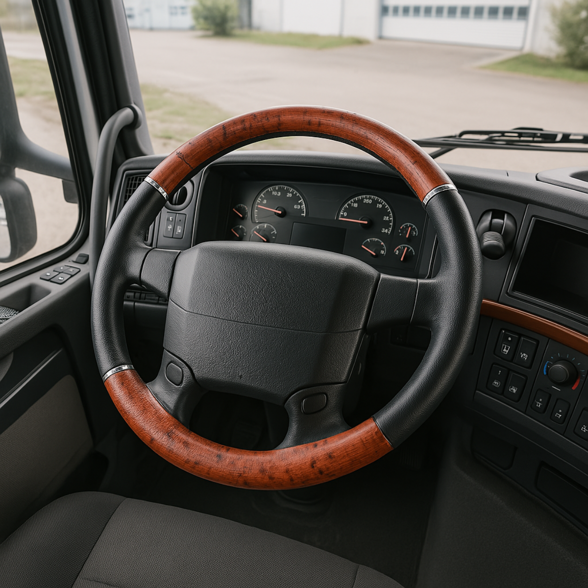 De All RideTruck stuurhoes in half houtlook, half zwart zorgt voor een hoger rijcomfort en een betere grip. Zo'nstuurovertrek beschermt je stuur tegen ringen of vuile handen. En hij blaast oudere,versleten sturen nieuw leven in. Deze universele stuurhoes zorgt erbovendien voor dat het truckstuur in de zomer niet gloeiend heet is en dewinter niet ijskoud. De hoes past op elk vrachtwagenstuur van 44 tot 46 cmdoorsnede.
