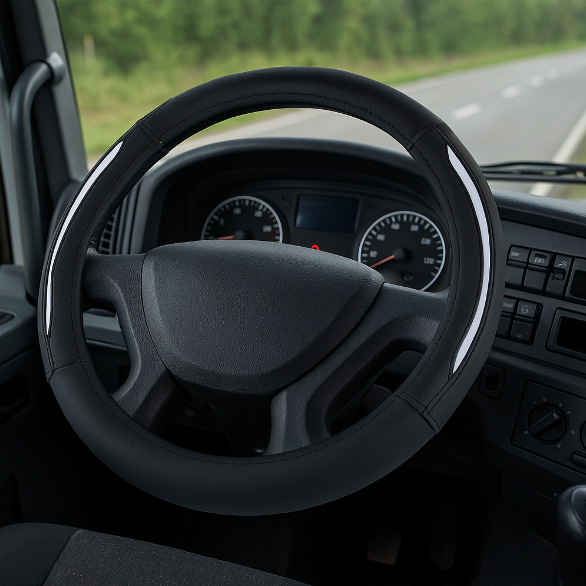 Maak jouw autoritten veiliger én comfortabeler met de auto stuurhoes van Dunlop. Met een diameter van 38 centimeter past deze hoes moeiteloos om vrijwel elk stuur met een diameter van 37 tot maximaal 39 centimeter heen. Het gebruik van hoogwaardig kunstleer op de stuurhoes zorgt voor een zacht en soepel gevoel, terwijl het tevens voorkomt dat je handen van het stuur afglijden. Dit is vooral handig bij warm weer. Deze moderne stuurhoes in een elegante zwarte kleur met witte details zorgt niet alleen voor extra veiligheid, maar dient ook als stijlvolle auto decoratie. Het kan zelfs versleten stuur bekleding weer nieuw leven inblazen. Kortom, deze auto stuurhoes biedt de perfecte combinatie van veiligheid en comfort tijdens jouw autorit.