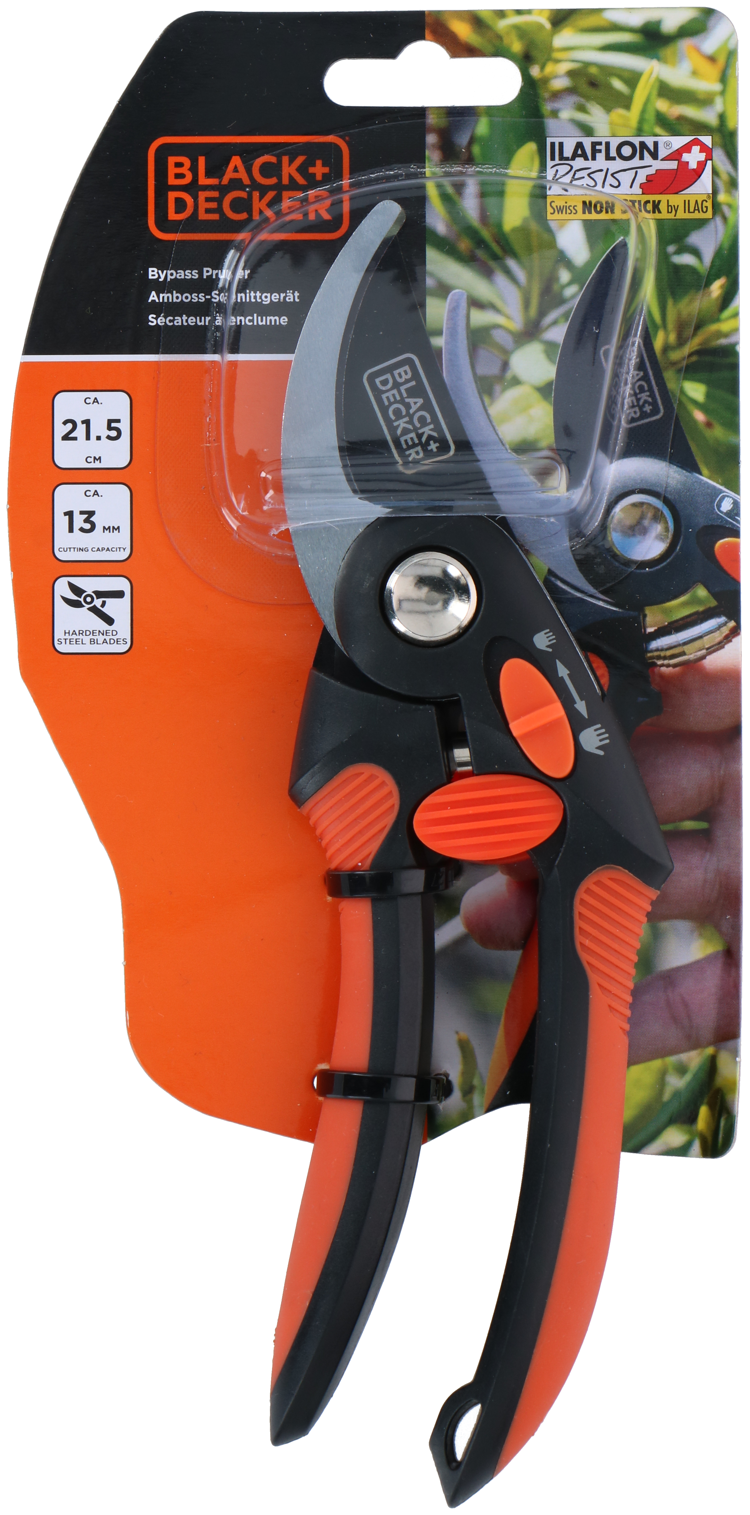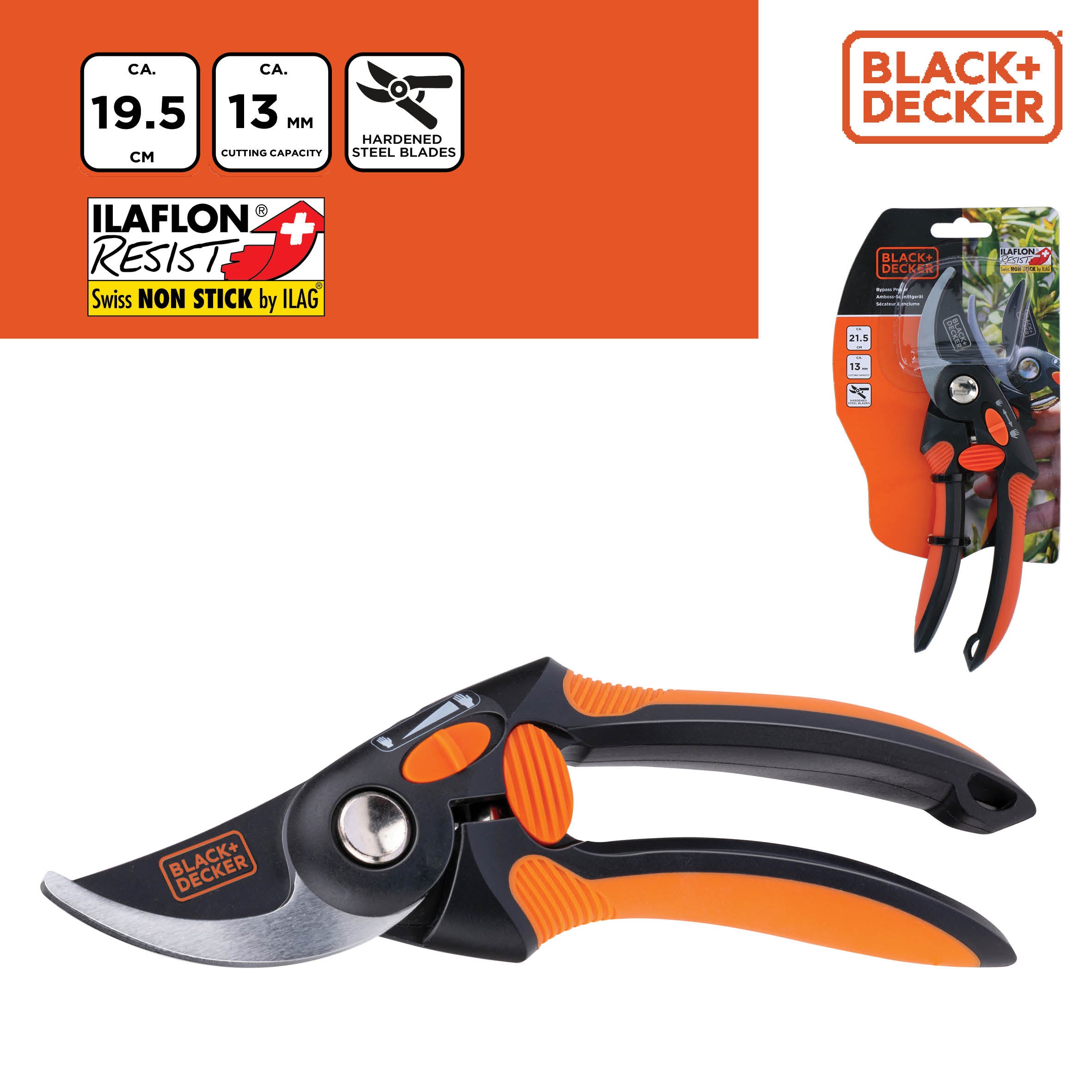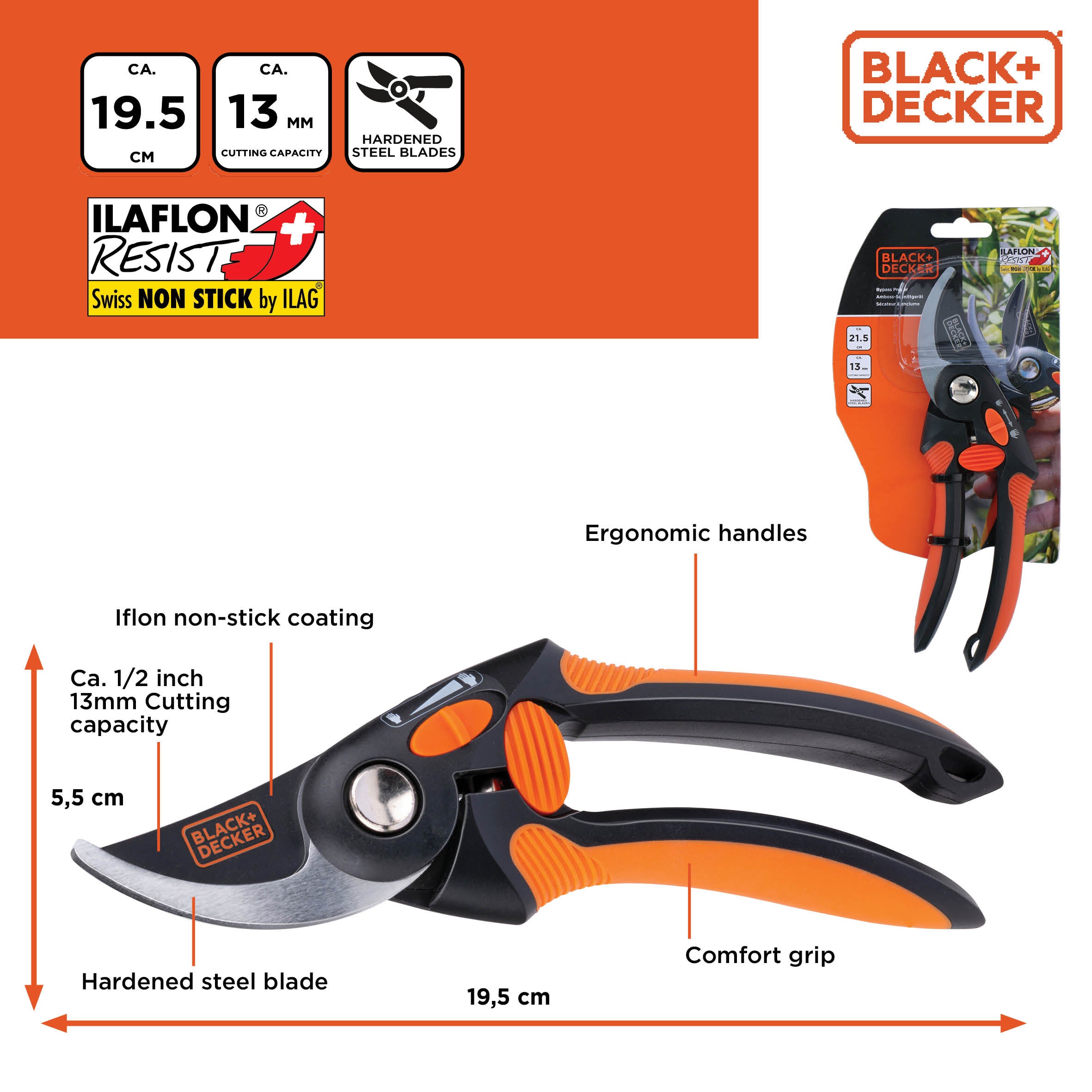 Maak kennis met de BLACK+DECKER snoeischaar, jouw ideale partner voor het moeiteloos snoeien van struiken, takken en meer. De takkenschaar beschikt over hoogwaardige stalen snijbladen met een anti-kleef laag, waardoor je moeiteloos door takken en struiken kunt snijden zonder dat er zich vuil ophoopt. De ergonomische handgreep is speciaal ontworpen om comfortabel in jouw hand te passen. Bovendien is de snoeischaar uitgerust met een Easy Slide veiligheidsvergrendeling, waardoor je hem veilig kunt opbergen wanneer hij niet in gebruik is. Met een snoeicapaciteit van 13 mm is deze snoeischaar ideaal voor het trimmen van struiken, rozen, en het knippen van dunne takken.