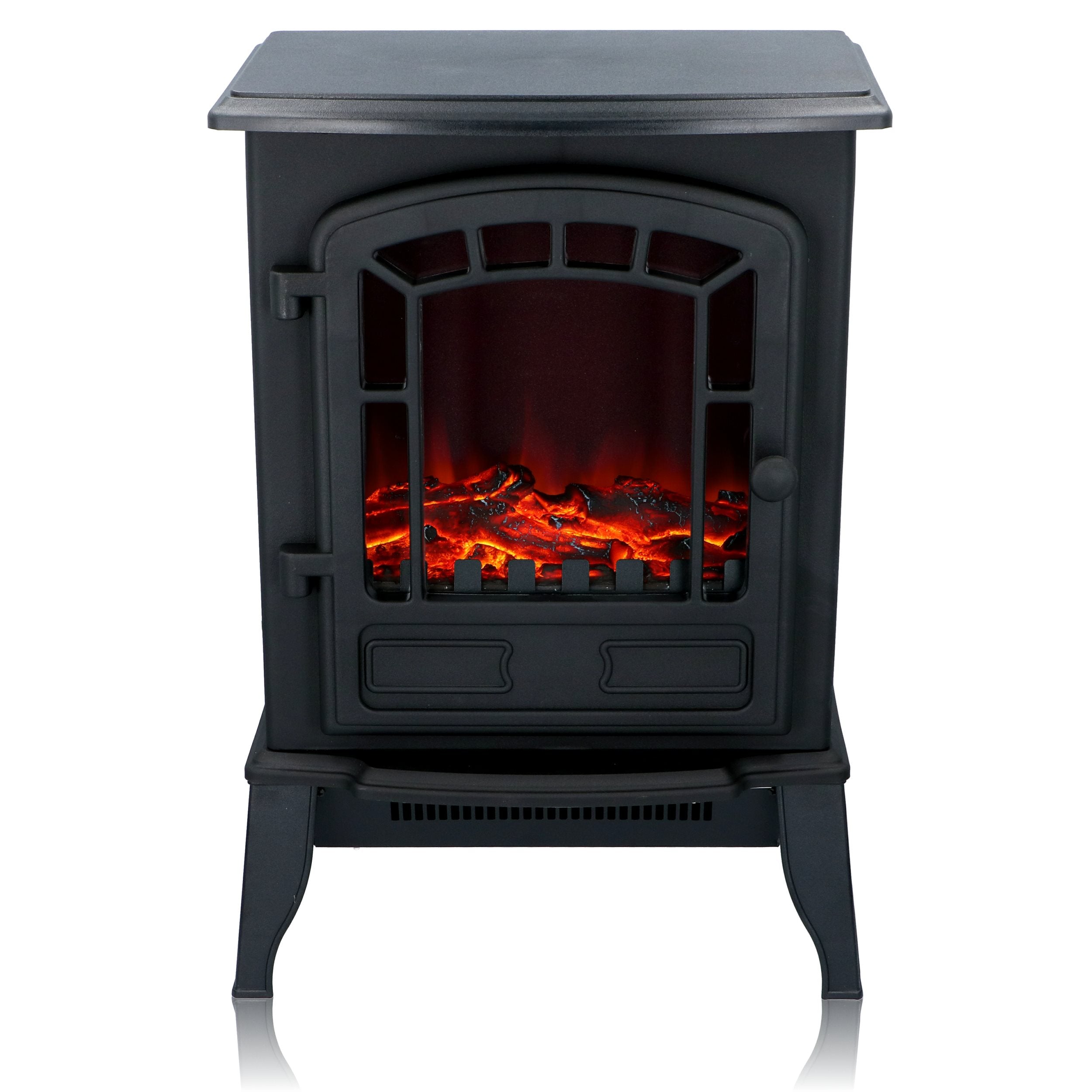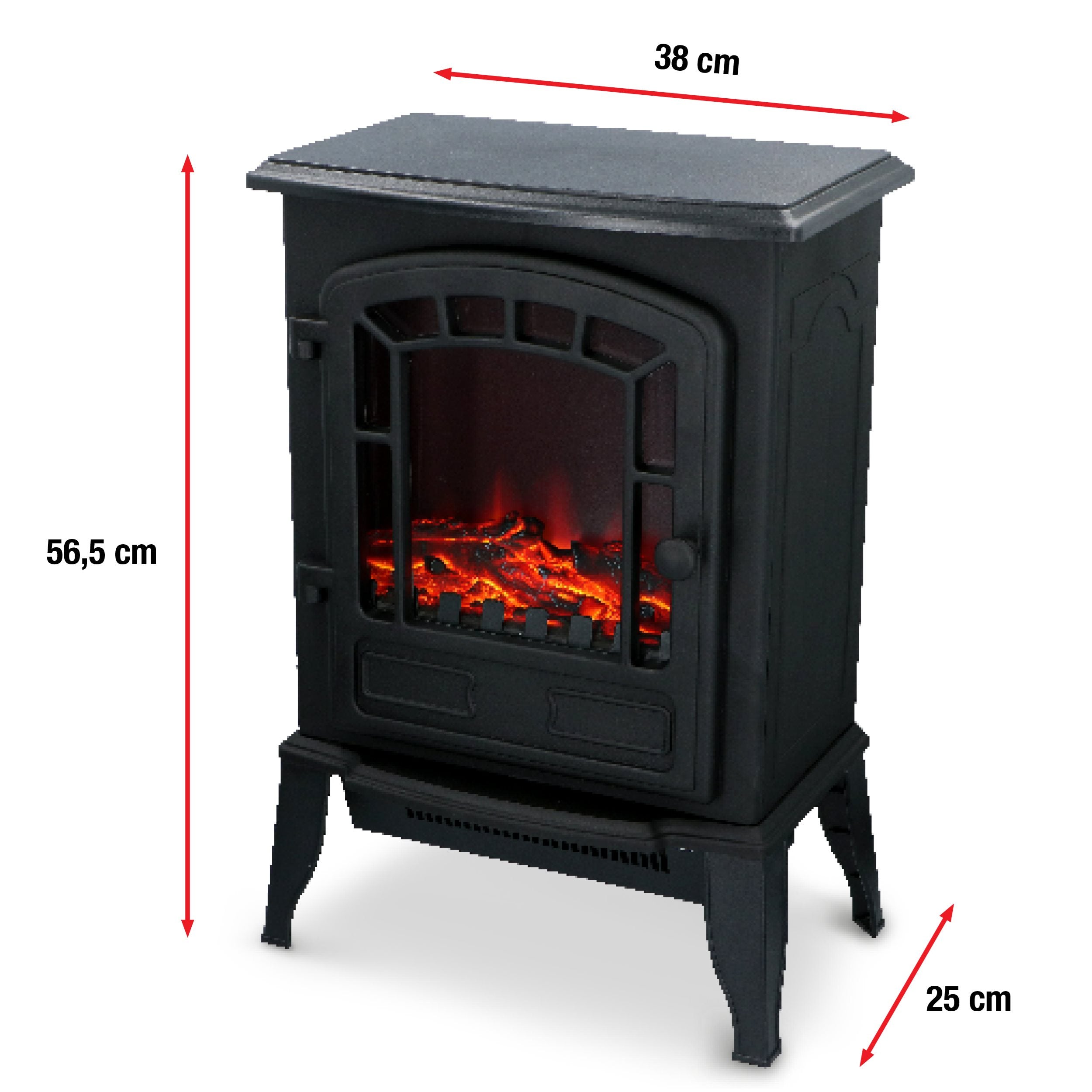 Deze elektrische sfeerhaard van Classic Fire geeft een realistisch vlameffect en naar wens ook verwarming. Omdat je elektrische verwarming gebruikt, heb je geen schoorsteen of hout nodig. Kortom, sfeer in een handomdraai! De zwarte elektrische kachel Torino staat op pootjes vrij in de ruimte. Hij is zo'n 56,5 centimeter hoog, 25 centimeter diep en 38 centimeter breed.