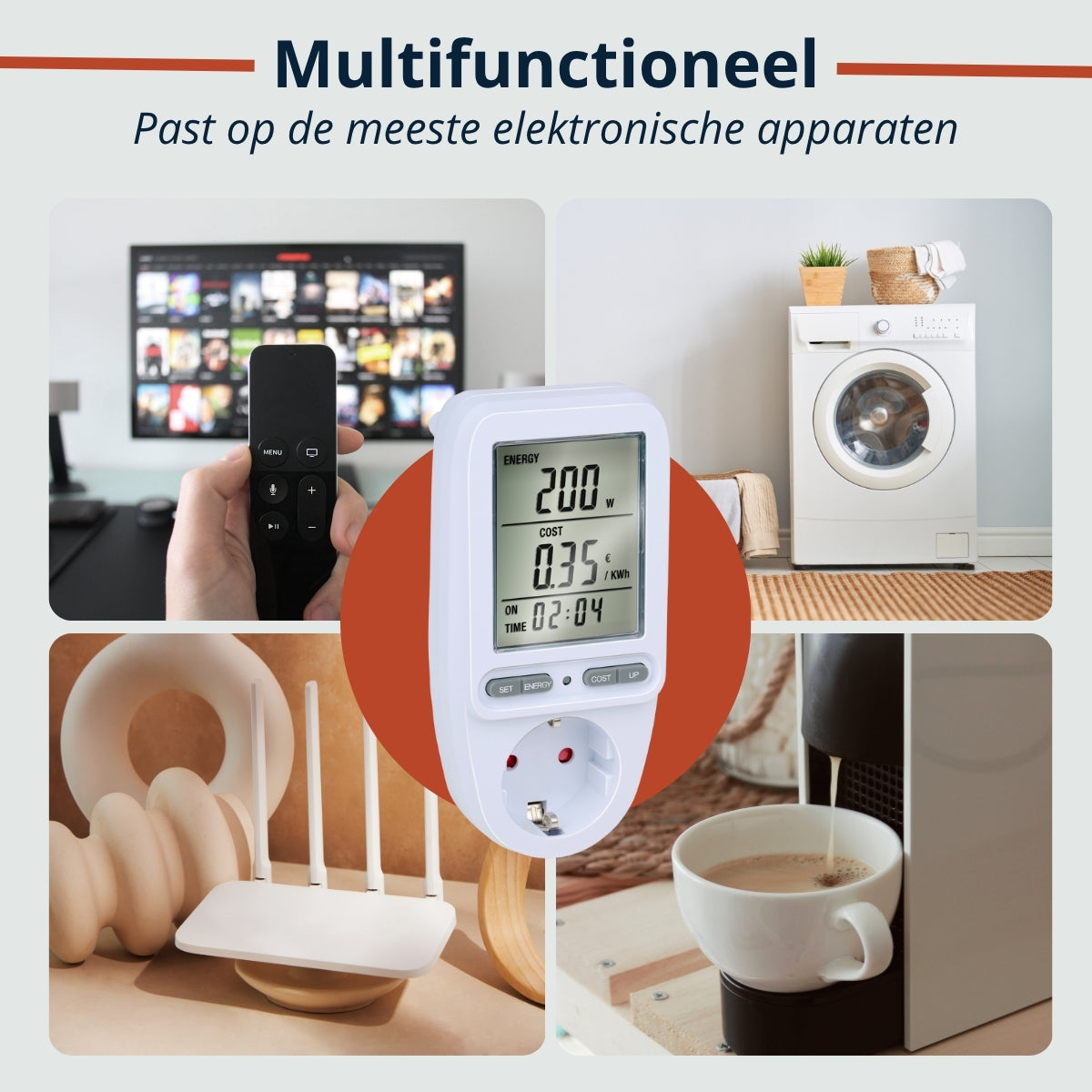 - Eenvoudig in gebruik: Steek de verbruiksmeter in het stopcontact, sluit je apparaat aan, en je kunt direct het energieverbruik aflezen.