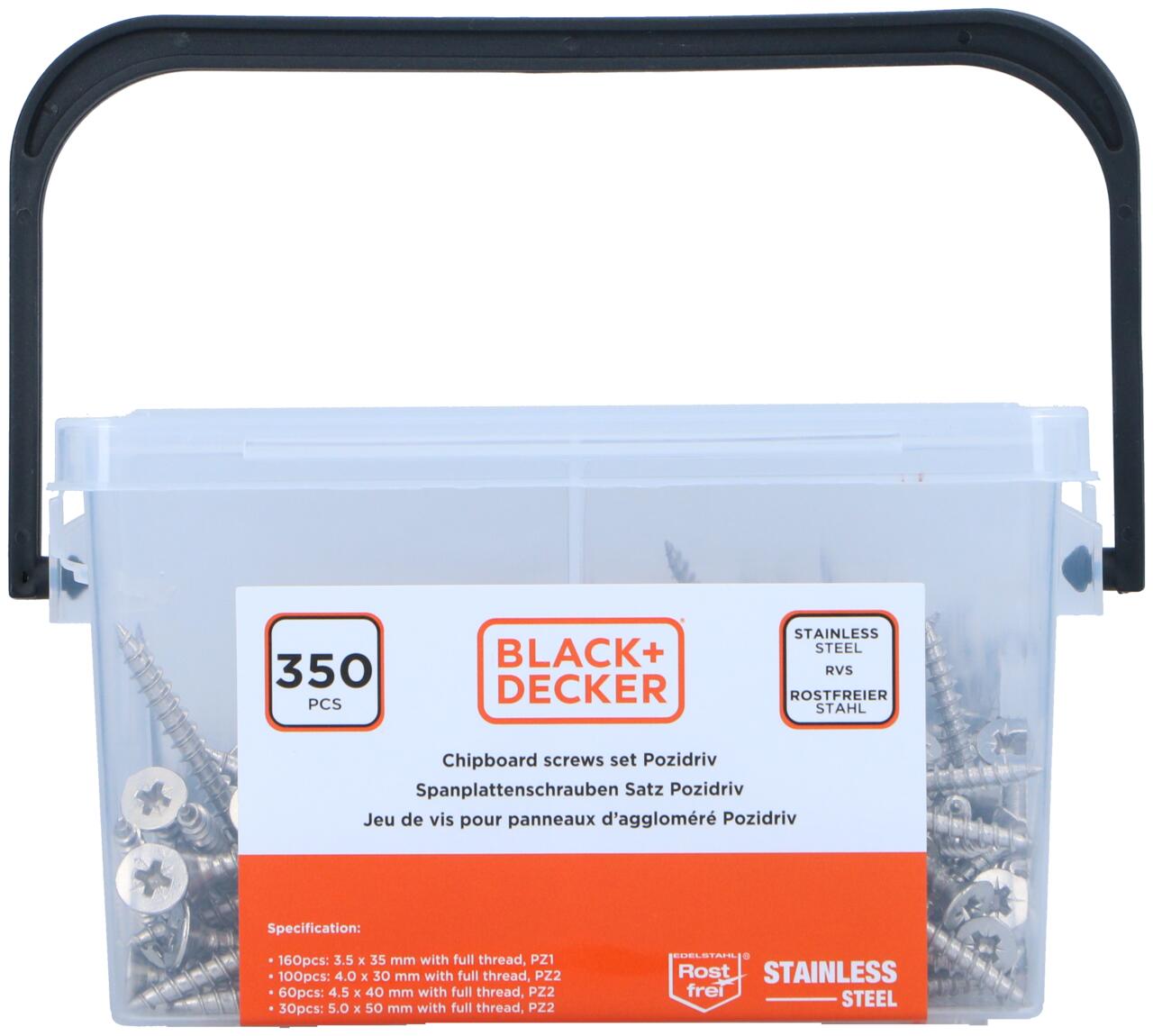 Specificaties BLACK+DECKER spaanplaatschroeven set 350 stuks