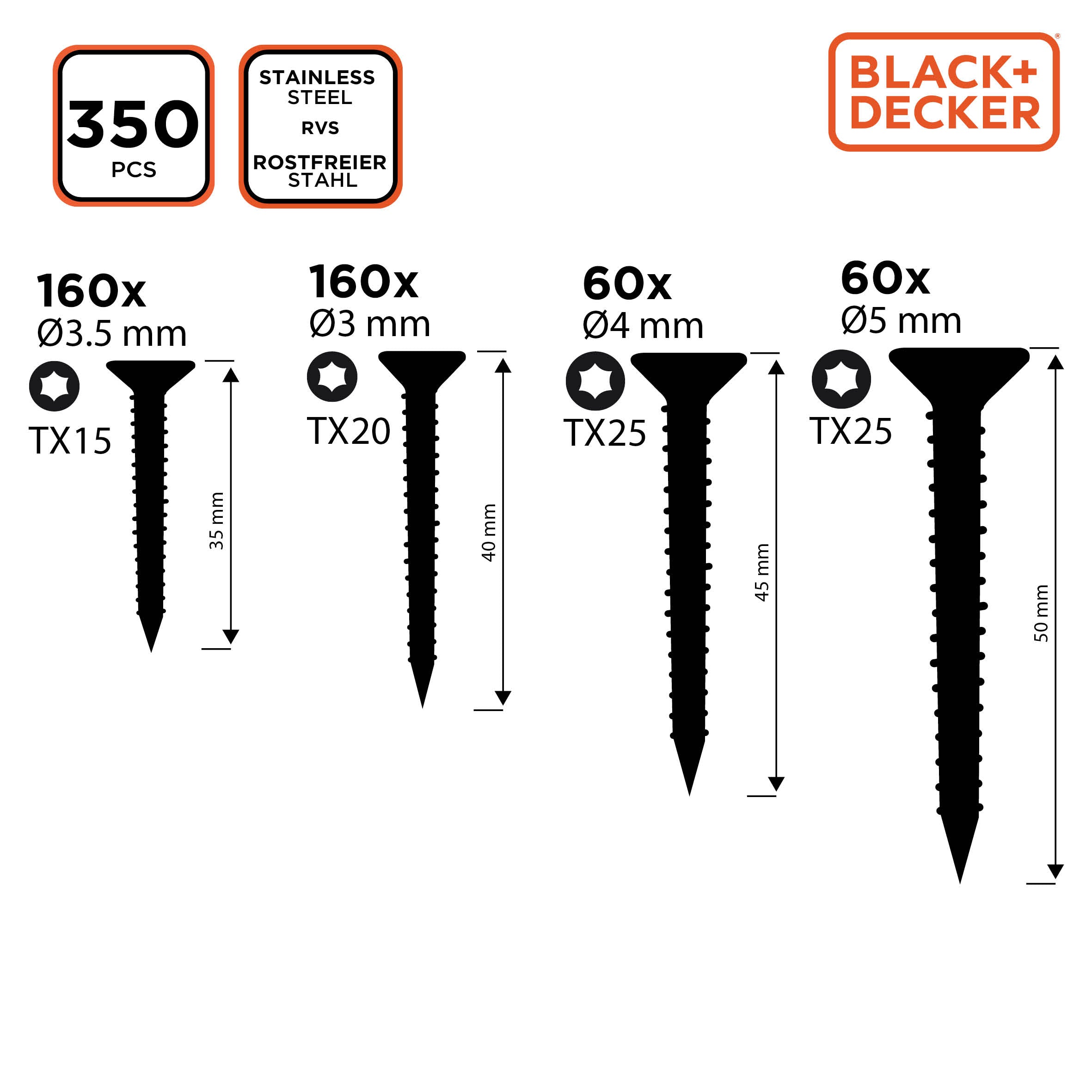BLACK+DECKER Spaanplaatschroeven Set