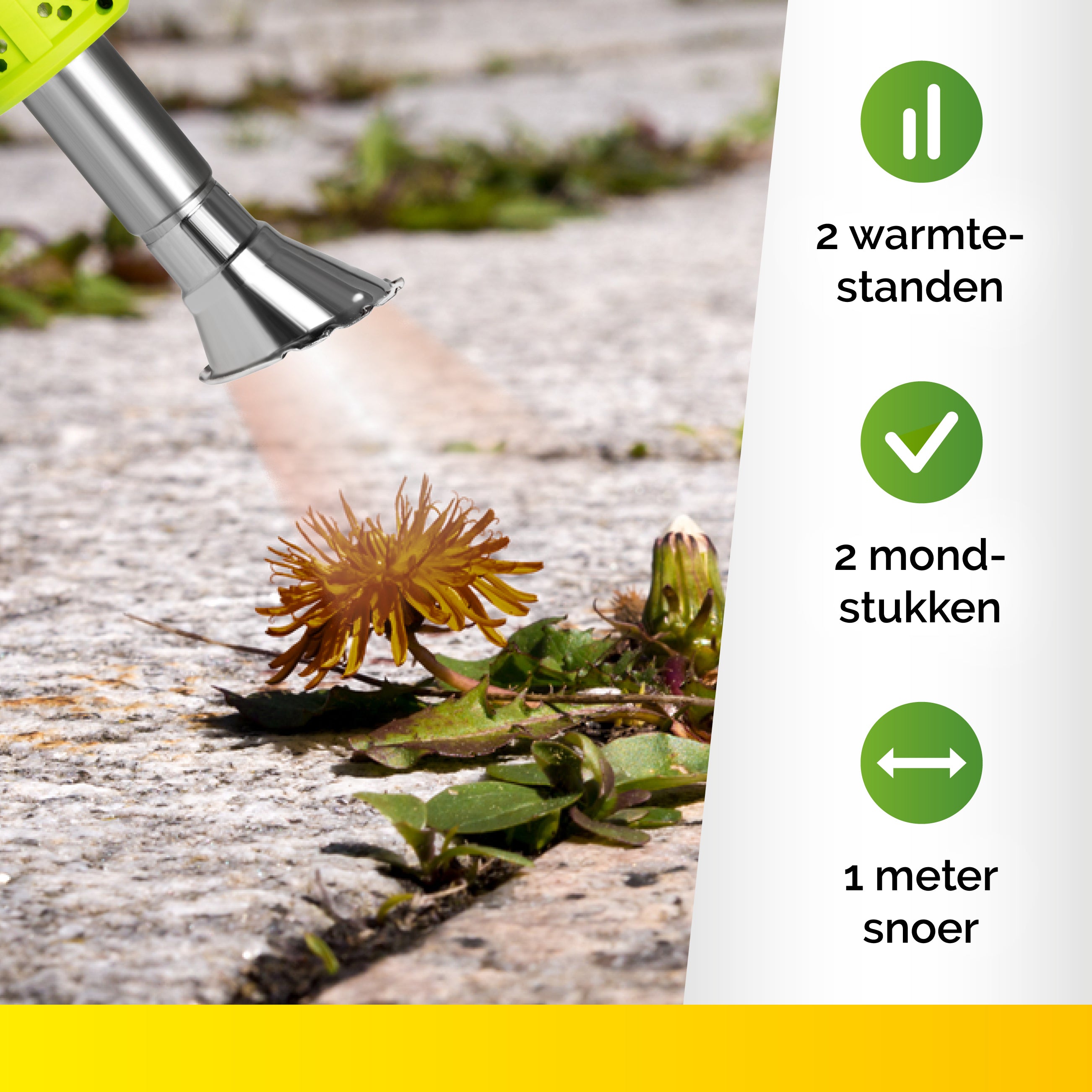 Reken voorgoed af met onkruid met de elektrische onkruidbrander van Kinzo. Met deze onkruidbrander bestrijd je onkruid gemakkelijk, snel, doeltreffend en bovendien milieuvriendelijk. Je maakt met de onkruidverwijderaar namelijk geen gebruik van chemisch bestrijdingsmiddel, gas of open vuur. Deze Kinzo elektrische onkruidbrander maakt gebruik van een aangemaakte stroom hete lucht, hiermee wordt het onkruid als het ware 'verbrand'. In slechts een paar seconden beschadig je het onkruid zodanig dat deze uitdroogt en binnen een paar dagen afsterft. Let op dat hardnekkig onkruid soms meer dan een behandeling nodig kan hebben. De elektrische onkruidbrander is multifunctioneel, je kunt hem namelijk ook gebruiken om op een snelle en veilige manier je houtskool barbeque aan te steken. Daarvoor is een speciaal mondstuk inbegrepen. Dankzij de lengte van 1 meter hoef je met deze onkruidverwijderaar niet meer door je rug.