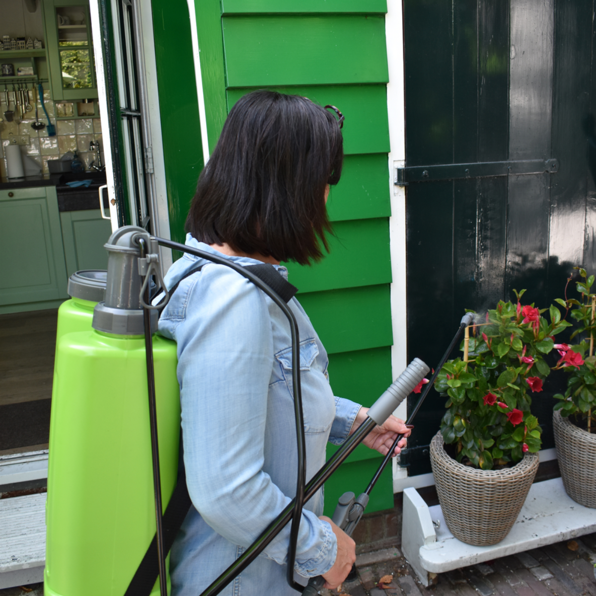 De Kinzo rugsproeier is de ideale oplossing voor het besproeien van je tuin en gazon met water of andere vloeistoffen die onkruid en insecten tegen gaan. De drukspuit heeft een tankcapaciteit van 18 liter, waardoor je hem tijdens het gebruiken niet continu bij hoeft te vullen. Dankzij een grote vulopening met een ingebouwd filter giet je vloeistoffen gemakkelijk in de rugsproeier en voorkom je ook zoveel mogelijk vertoppingen. Je kunt ervoor kiezen om de drukspuit bij het handvat in de hand te dragen, maar om lichamelijke klachten te voorkomen draag je hem makkelijker op de rug. De rugsproeier heeft 2 in lengte verstelbare draagriemen waardoor je hem naar voorkeur in kunt stellen. Tot slot worden er met de onkruidspuit ook verschillende rubberen afsluitringen, een dubbele spuitkop, een brede spuitkop, conische spuitkop en een 4-gaten spuitkop meegeleverd voor verschillende doeleinden.