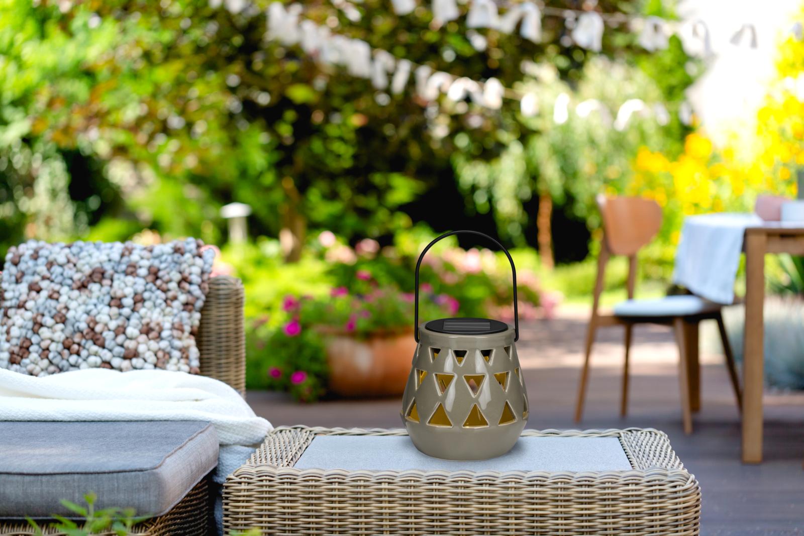 - De solar lamp is gemaakt van keramiek, een materiaal dat langer meegaat dan vergelijkbare materialen zoals kunststof en metaal.