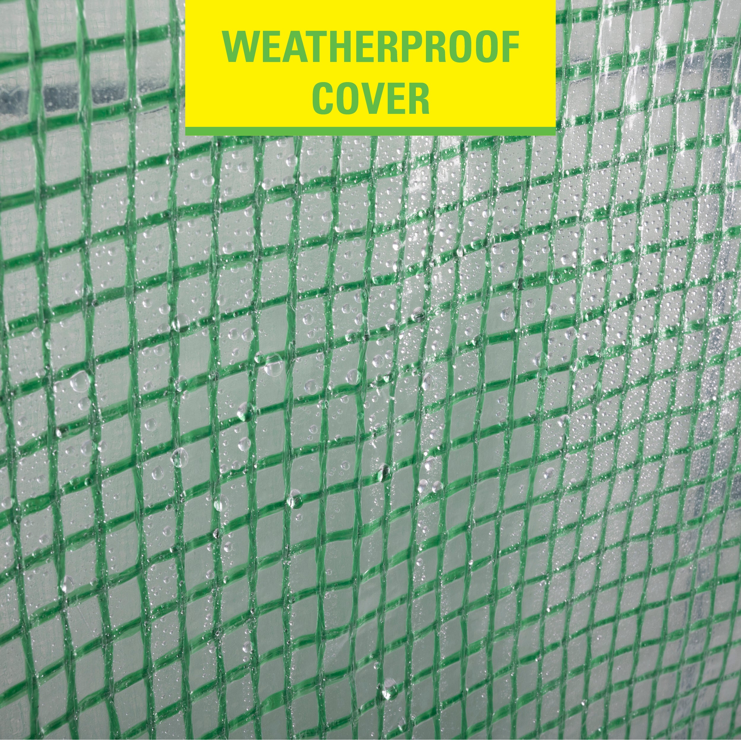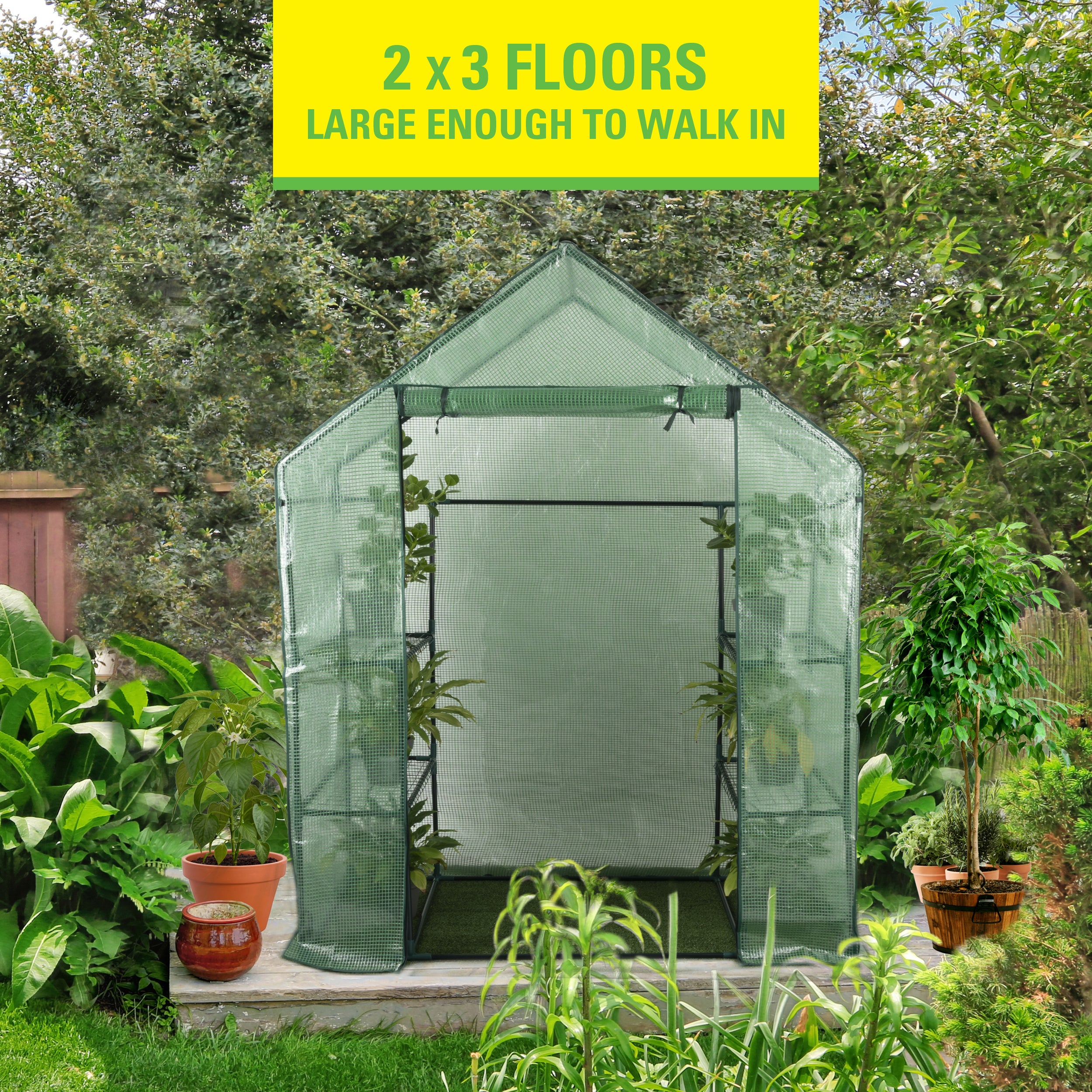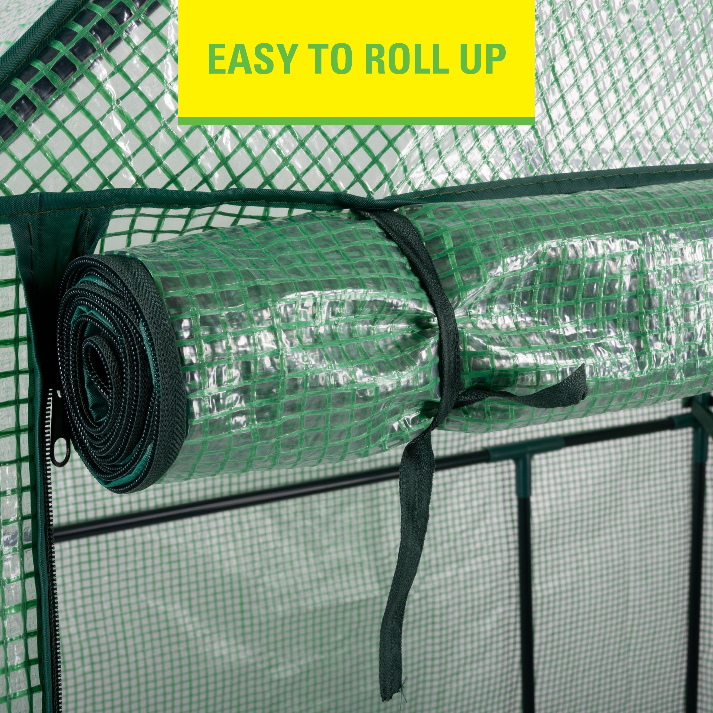 Met deze Kinzo broeikas kweek je zelf groente, fruit en bloemen in de comfort van je eigen tuin! Met een afmeting van 143 x 73 x 195 centimeter en aan weerszijde van de kweekkas een stellage met elk 3 verdiepingen heb je genoeg ruimte voor al je favoriete bloemen en planten. De tuinkas biedt de perfecte omgeving voor het laten groeien van planten en bloemen door het creëren van een warme en vochtige atmosfeer. De broeikas heeft een metalen frame met een duurzame en waterbestendige hoes. De hoes heeft een deur met rits die toegang biedt tot de binnenkant van de tuinkas. Je kunt de deur oprollen en vastzetten zodat hij open blijft staan. Het plastic greenhouse is ook een geweldige manier om jonge zaailingen te beschermen tegen insecten en wind.