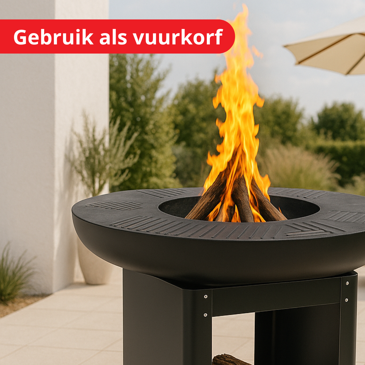 Sfeer en warmte met de vuurkorf van BBQ Collection. Gebruik hem als terrashaard voor wat extra warmte buiten tijdens de koudere maanden of als grillplaat in de zomer om de heerlijkste gerechten klaar te maken. Voor brandhout hoef je niet ver te lopen, de vuurkorf heeft namelijk een ingebouwde opslagplaats voor brandhout.