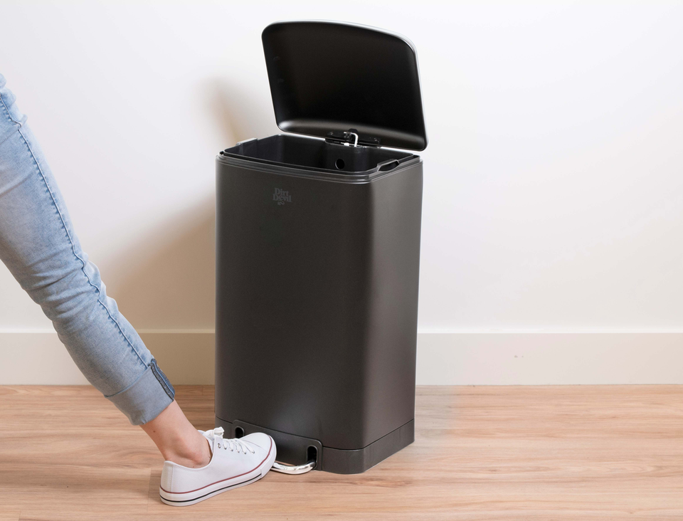 Heb je ook last van een prullenbak die dagelijks vol zit? Dat is geen probleem meer met de Dirt Devil pedaalemmer van 30 liter! Deze pedaalemmer is gemaakt van roestvrij staal en heeft een elegante uitstraling, waardoor het niet alleen een oplossing biedt voor je afval, maar ook een moderne toevoeging is aan je keuken, badkamer of kantoor. Met het soft close mechanisme klapt de deksel niet hard dicht, maar valt langzaam dicht zonder geluid. Het legen van de pedaalemmer is eenvoudig dankzij de verwijderbare binnenbak. Je kunt deze binnen enkele seconden uit de afvalemmer halen en gemakkelijk weer terugplaatsen na het legen. Bovendien hoef je de deksel niet aan te raken om de pedaalemmer te openen, omdat er een voetpedaal aan de onderkant aanwezig is.