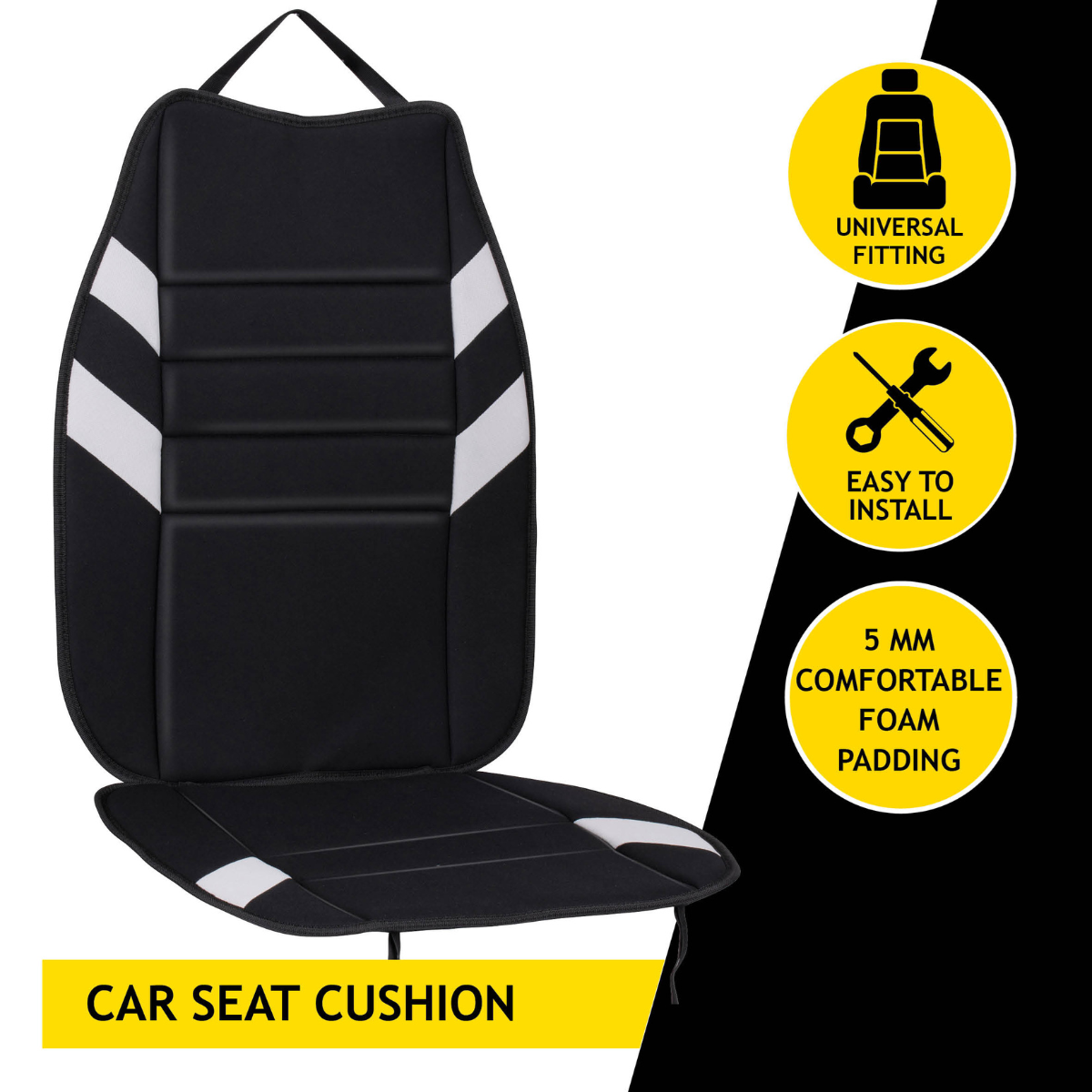 Geef je billen een zachte landing met dit stoelkussen en autostoelhoes in één van Dunlop. Gevoerd met een zacht schuimlaag aan de binnenkant van het auto zitkussen van 5 mm dik, maak je je rit comfortabeler. Dankzij de universele fitting van de autostoel hoes, past hij op de meeste autostoelen. Het is gemakkelijk te installeren op je autostoel dankzij de koordjes waarmee je de autostoel beschermer vastzet.