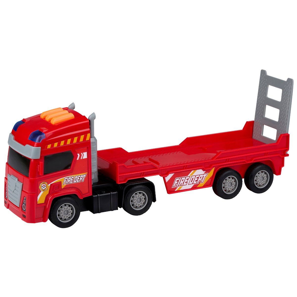 - GROOT FORMAAT – De brandweerwagen met oplegger biedt voldoende ruimte voor de voertuigen en zorgt voor een indrukwekkende uitstraling.