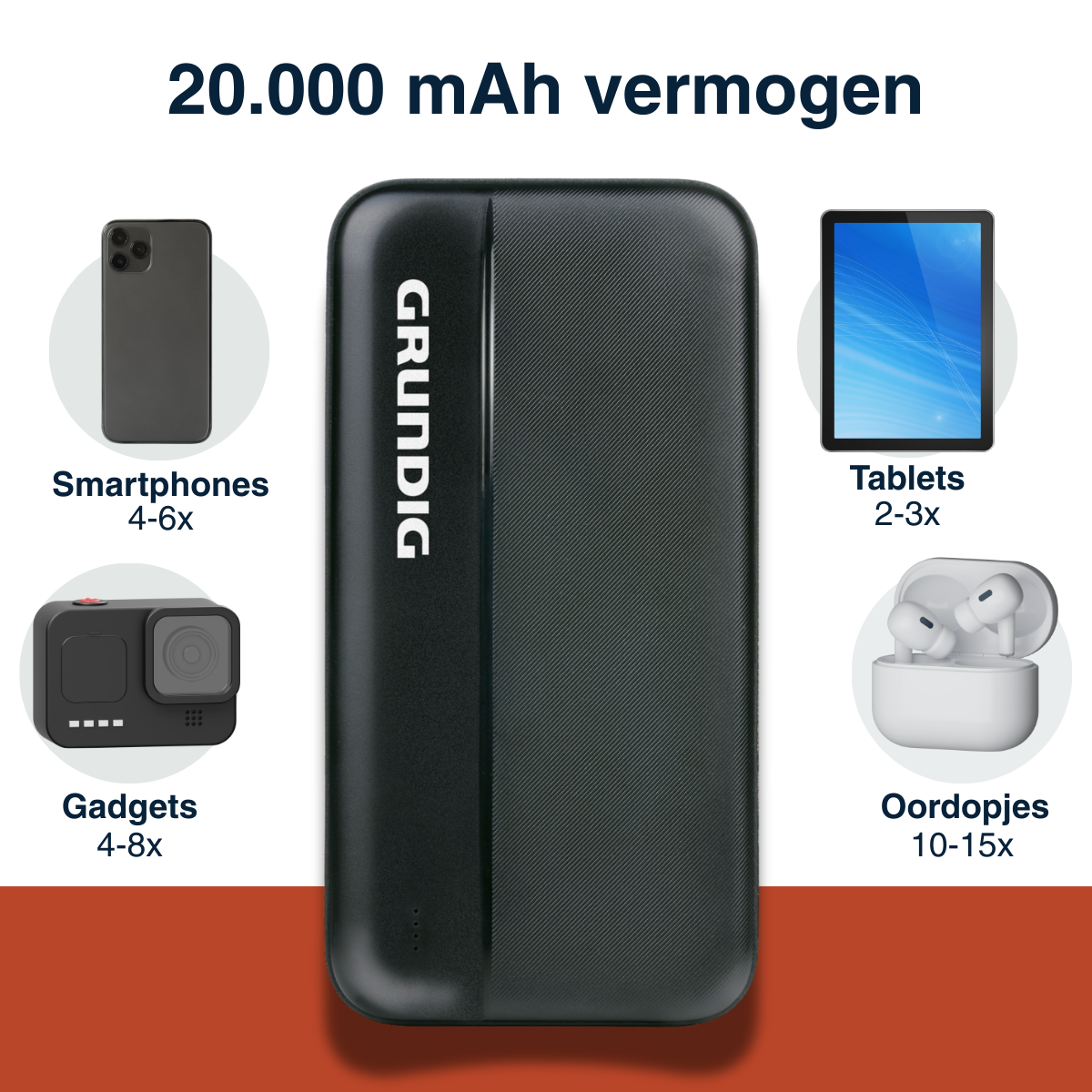 Grundig Powerbank 20000 mAh – Externe Batterij