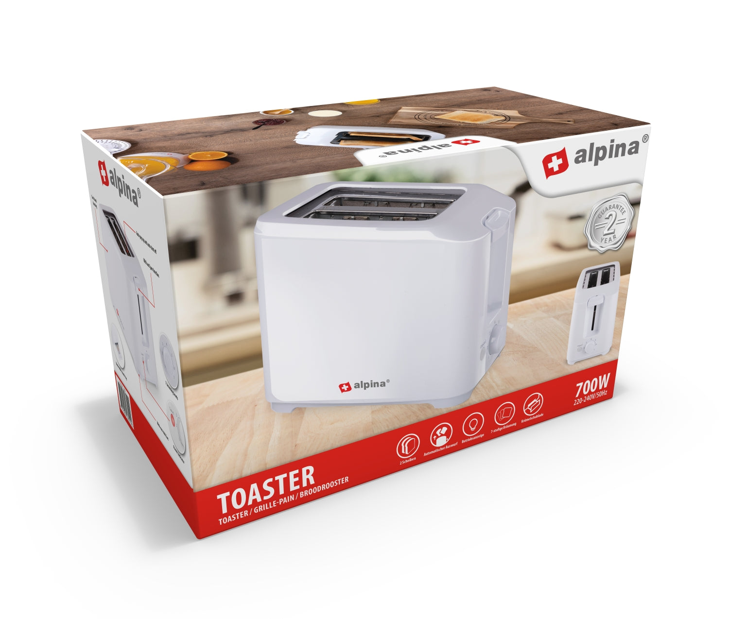 Zondag ontbijten of brunchen met verse toast? Bij je kom soep een stukje geroosterd brood? Je regelt het met deze witte broodrooster van alpina.