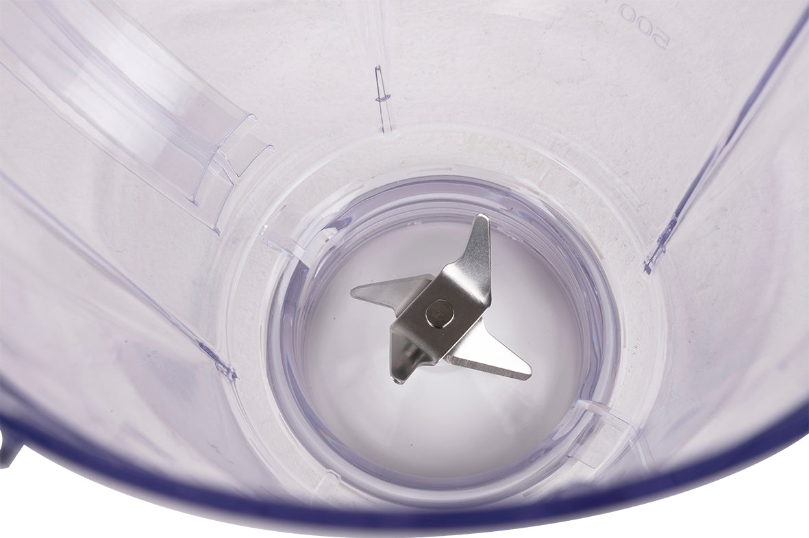 Met een vermogen van 400 Watt en zijn 2 snelheden inclusief turbofunctie mix je alles razendsnel fijn. De pulseerfunctie ('P') geeft de blender net wat meer kracht voor korte duur. Het apparaat staat stevig op elke ondergrond door de anti-slippootjes. Ook is hij beveiligd. Onder op de kom zit een veiligheidsvergrendeling; als de kom niet goed is bevestigd, werkt de blender niet.