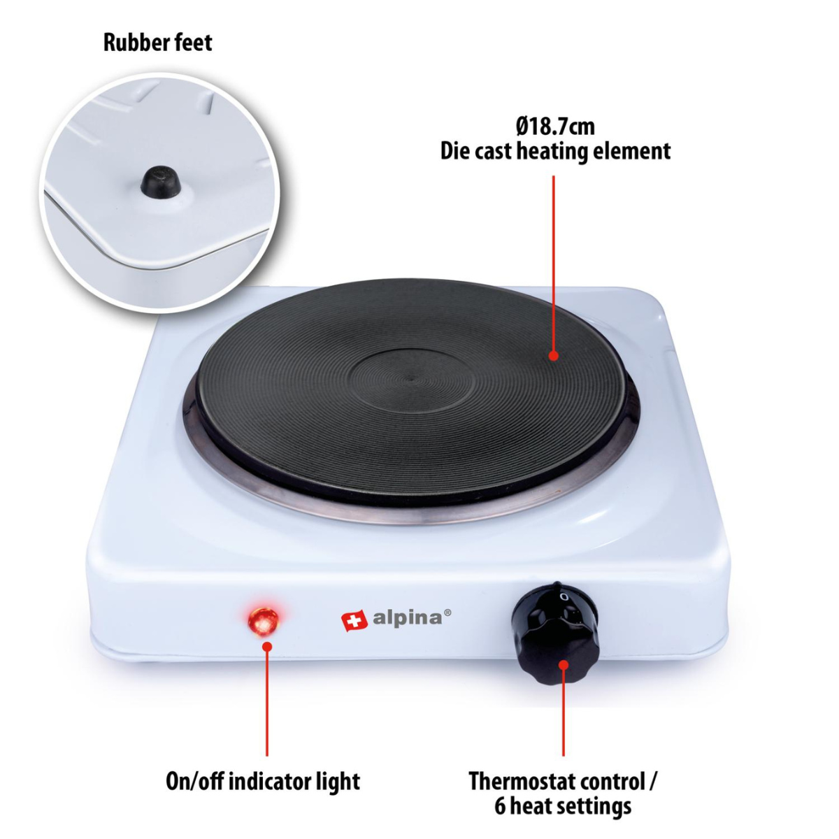 alpina Kachel 1 Pit 1500 W 25X28X7 Ø18 Inclusief Stekker Wit