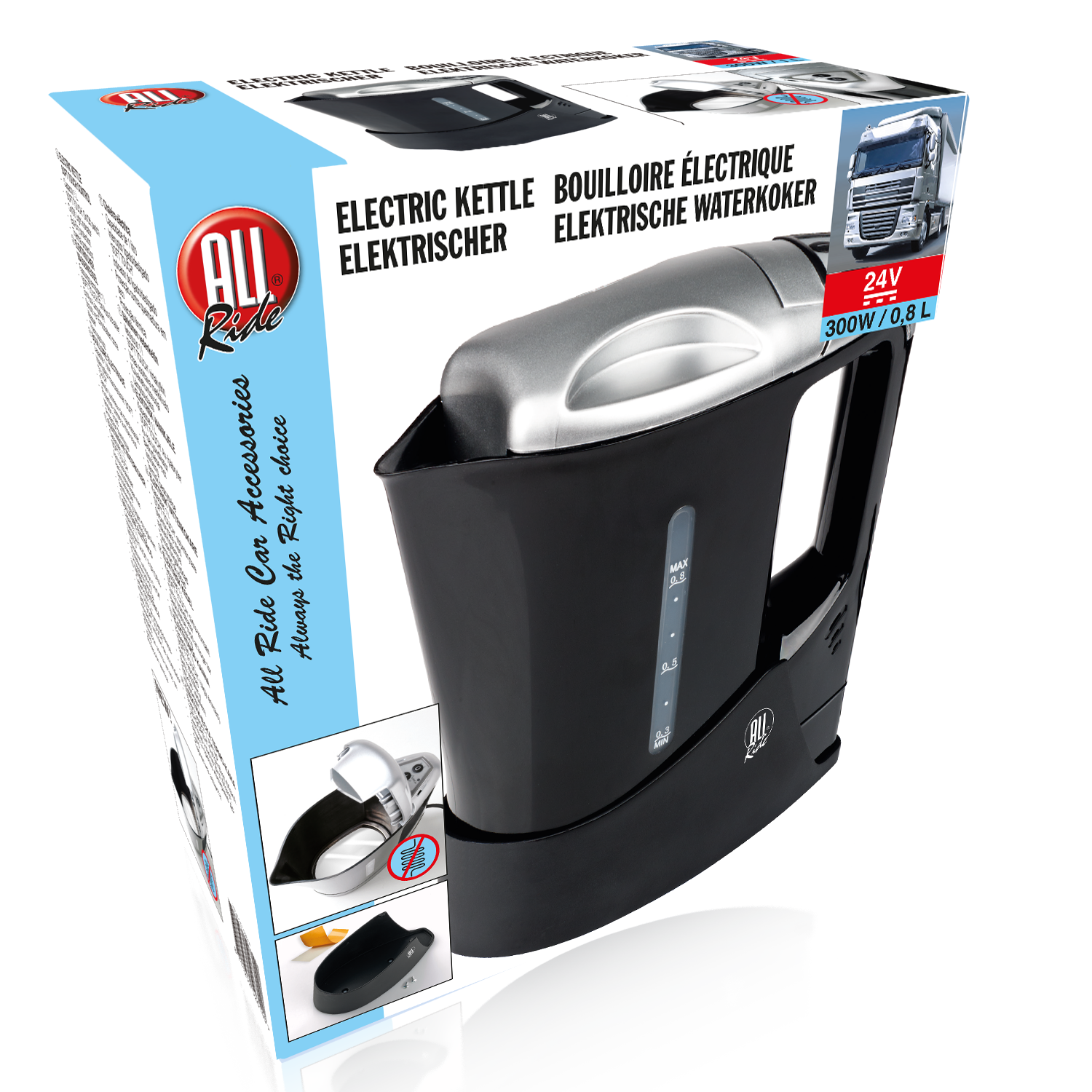 Je hebt altijd warm water onderweg dankzij de All Ride reiswaterkoker. Deze compacte waterkoker 24 volt heeft een aansluiting die op de aanstekerdoos in je vrachtwagen, auto boot of caravan past. De waterkoker heeft een inhoud van 0,8 liter en werkt op 24V. Hierdoor heb je binnen de kortse keren kokend heet water om bijvoorbeeld thee en oploskoffie mee te maken.