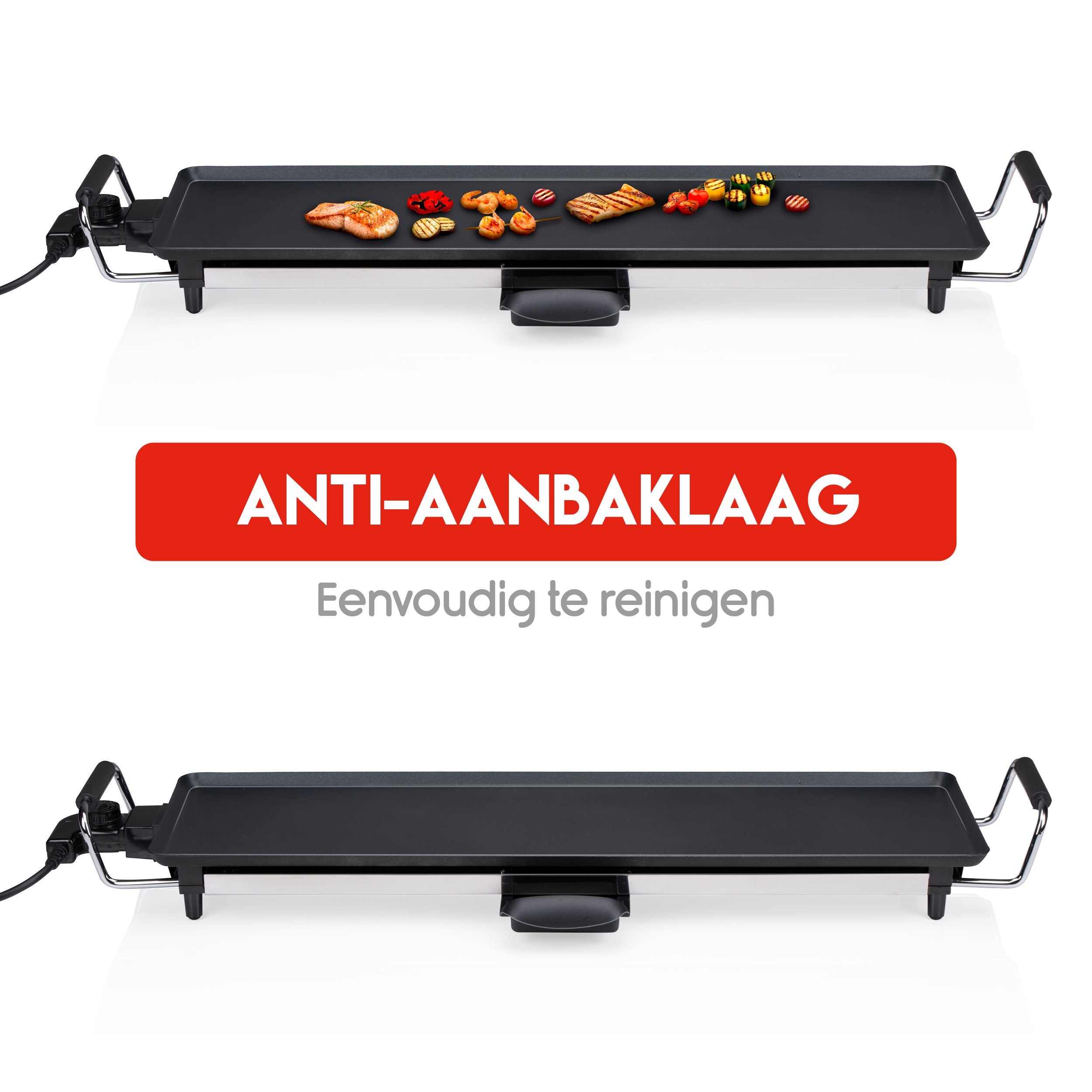 Ga heerlijk kokkerelen met het hele gezin op deze teppanyaki bakplaat van alpina. Kies uit 5 verschillende hitte instellingen. Ook heeft de grillplaat een verwijderbaar koord, stroomindicator, anti-aanbaklaag en verwijderbare opvangbak voor vet. Door het cool-touch handvat verbrand je je handen niet als je de handvaten aanraakt wanneer de plaat heet is.