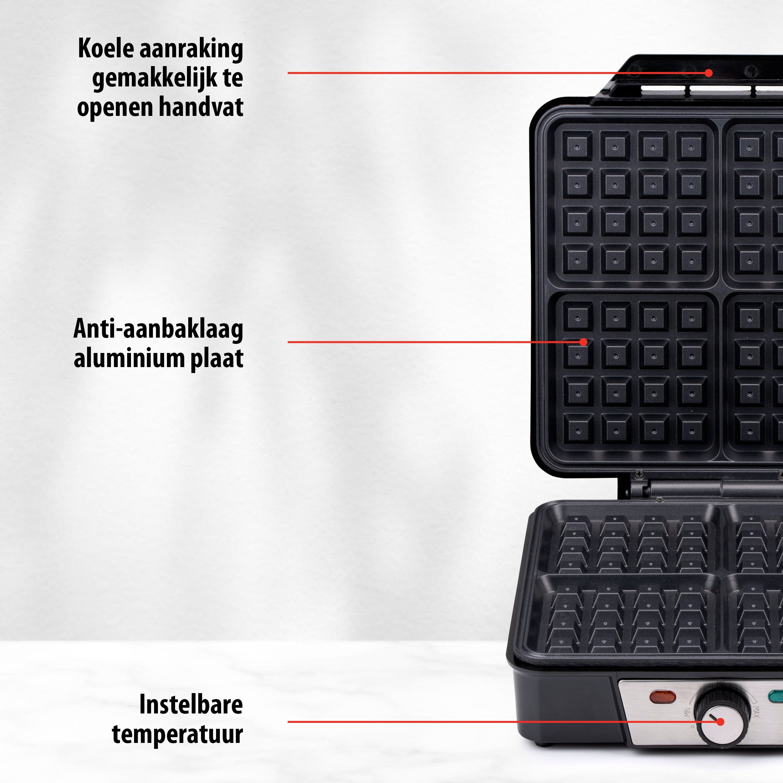 Met 1200 Watt is de wafelmaker snel opgewarmd en ook nog eens snel klaar met het bereiden van jouw wafels. Het handvat blijft koud na opwarming van het wafelijzer zodat jij je vingers er niet aan brandt. Nadat je klaar bent kun je het snoer opbergen in het daarvoor bestemde vakje van het apparaat zelf.