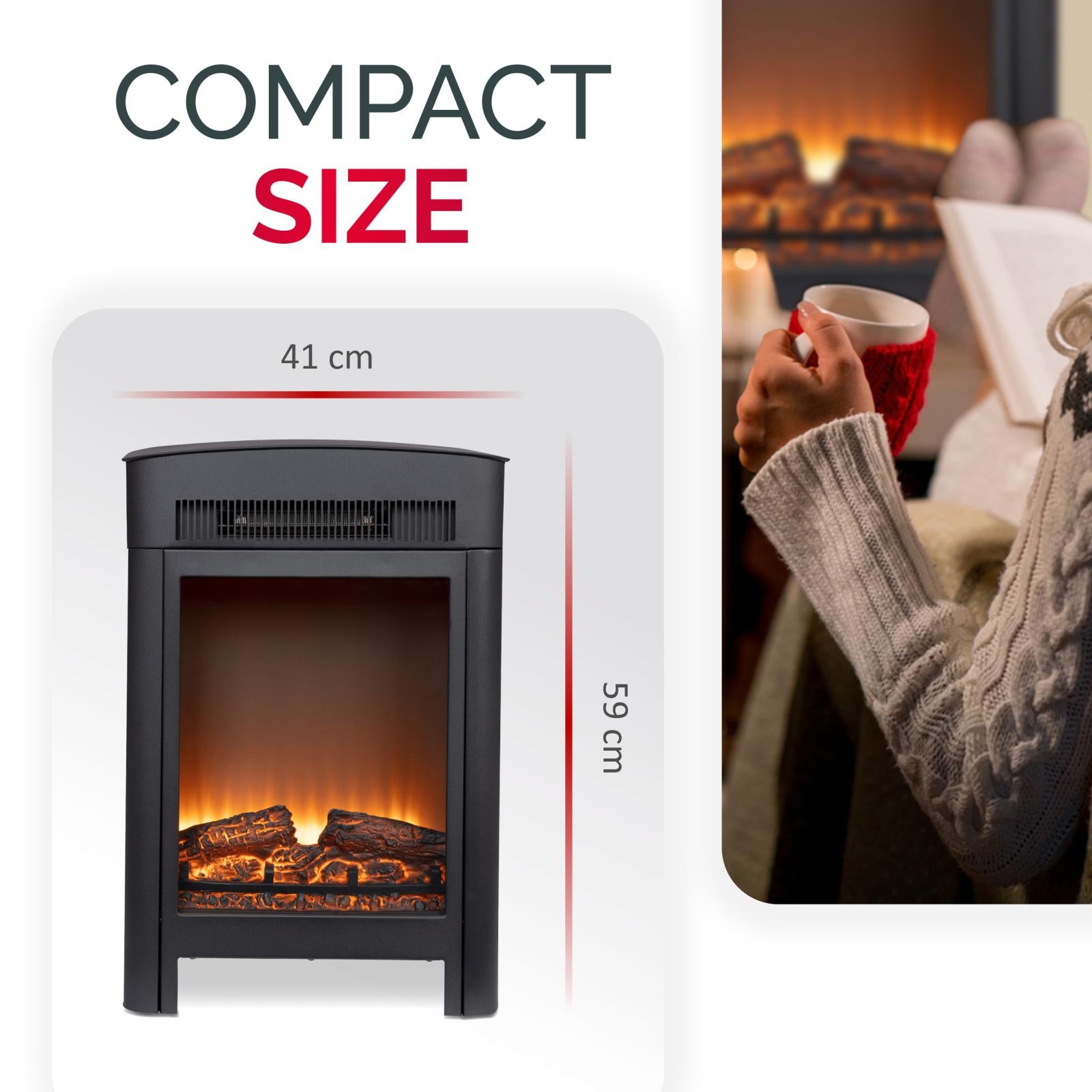 Deze kachel van 59 x 26 x 41 centimeter groot is gemakkelijk verplaatsbaar. Je kunt hem met de 2 aan de zijkanten ingebouwde handvatten overal neerzetten waar je wilt. Het enige wat je nodig hebt is een stopcontact.