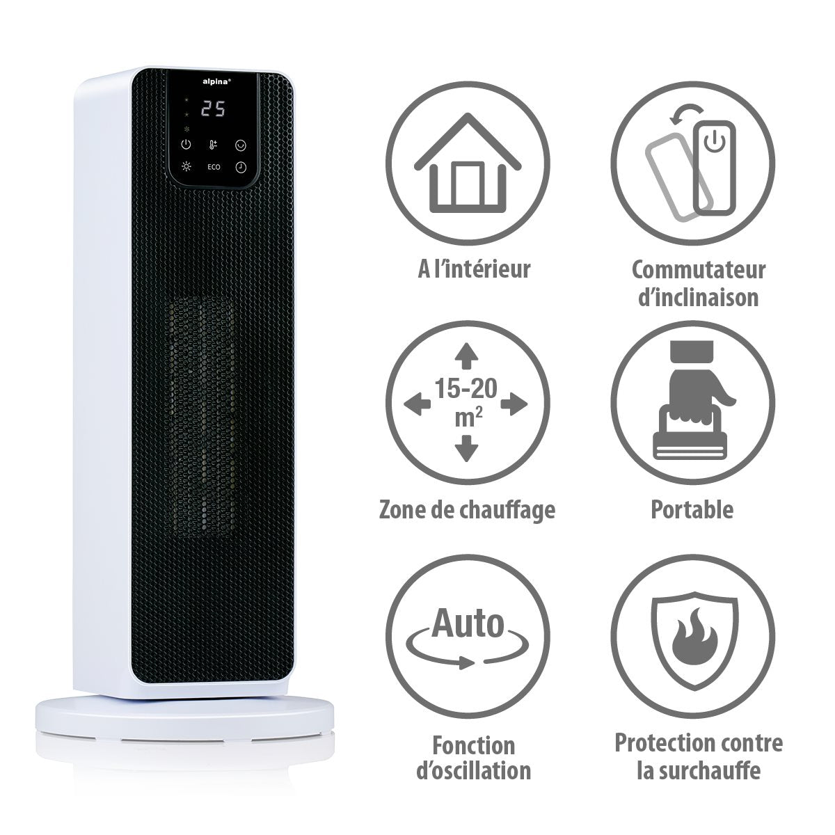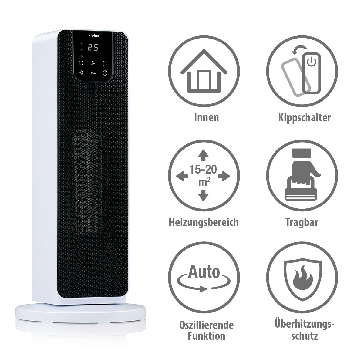 - Energiezuinig en krachtig: Dankzij de PTC-keramische verwarmingselementen geniet je van efficiënte warmte en lagere energiekosten.