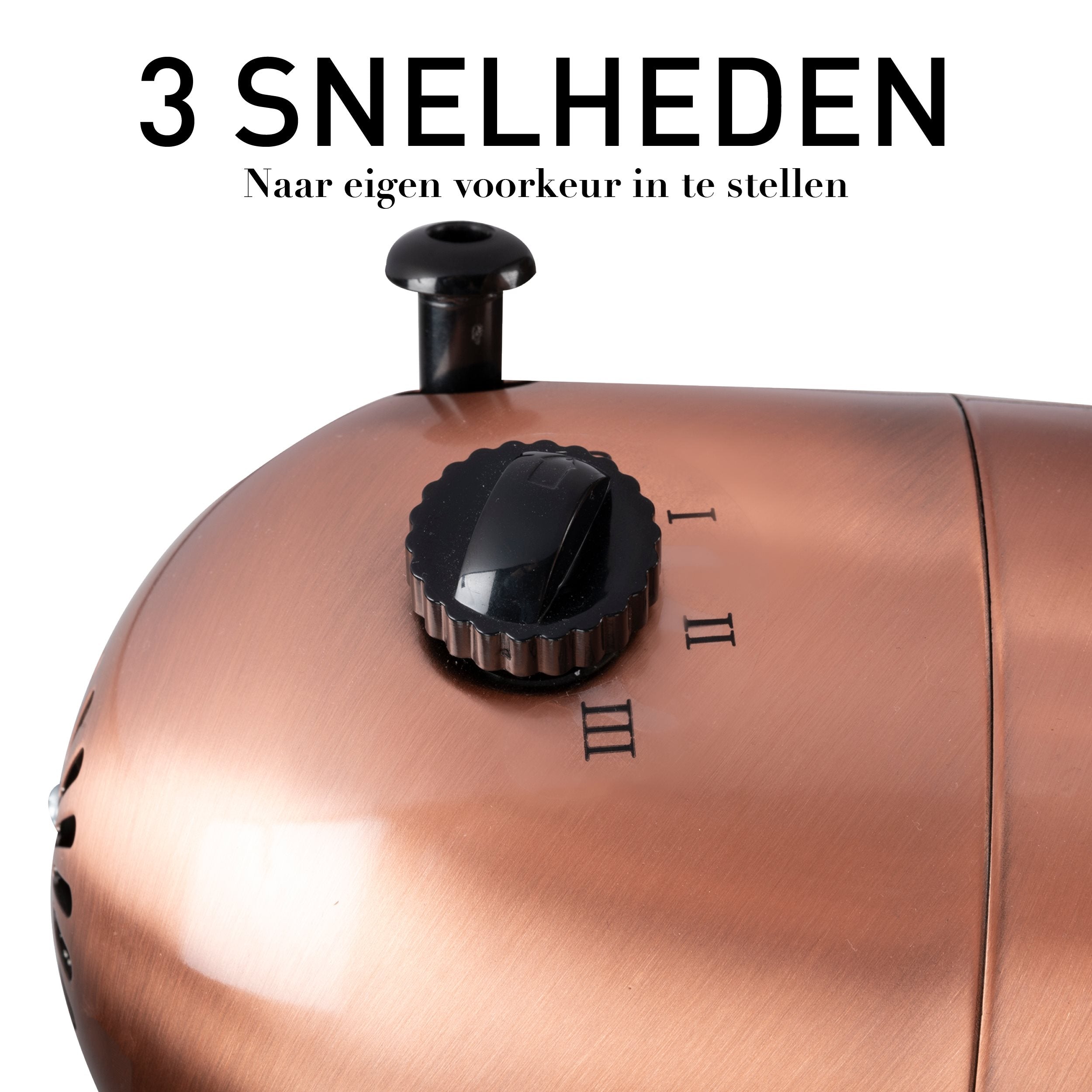De Lifetime Air statiefventilator heeft een bijzonder ontwerp met 3 poten. Deze drie poten, in combinatie met het koper materiaal, geven de ventilatortoren een unieke uitstraling die net dat beetje extra kan geven aan elk interieur. Hiermee is de Lifetime Air staande ventilator niet alleen functioneel, maar ook een echt focus punt in huis. Het driepoot statief zorgt er daarnaast voor dat de ventilator extra stevig staat en minder snel om kan vallen.
