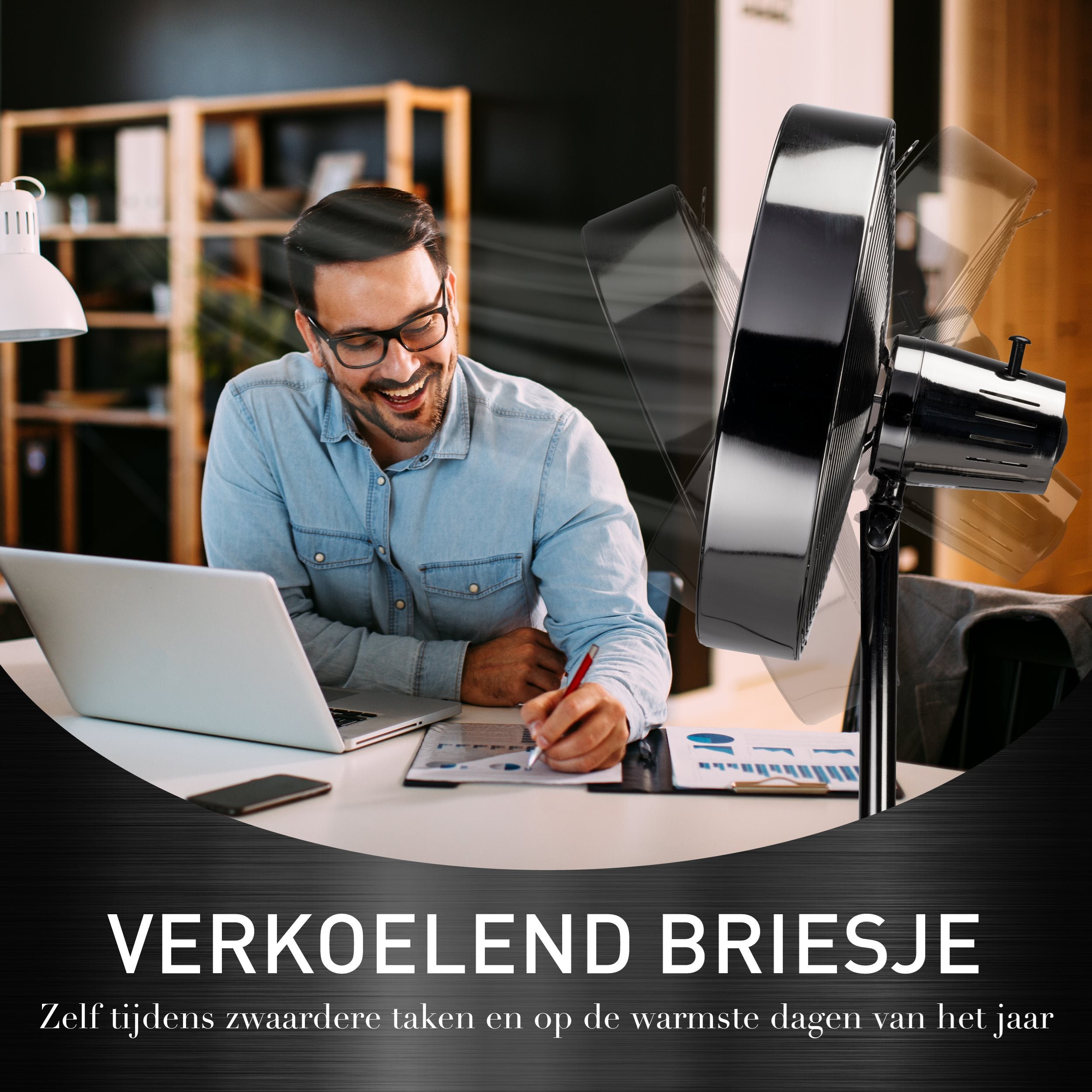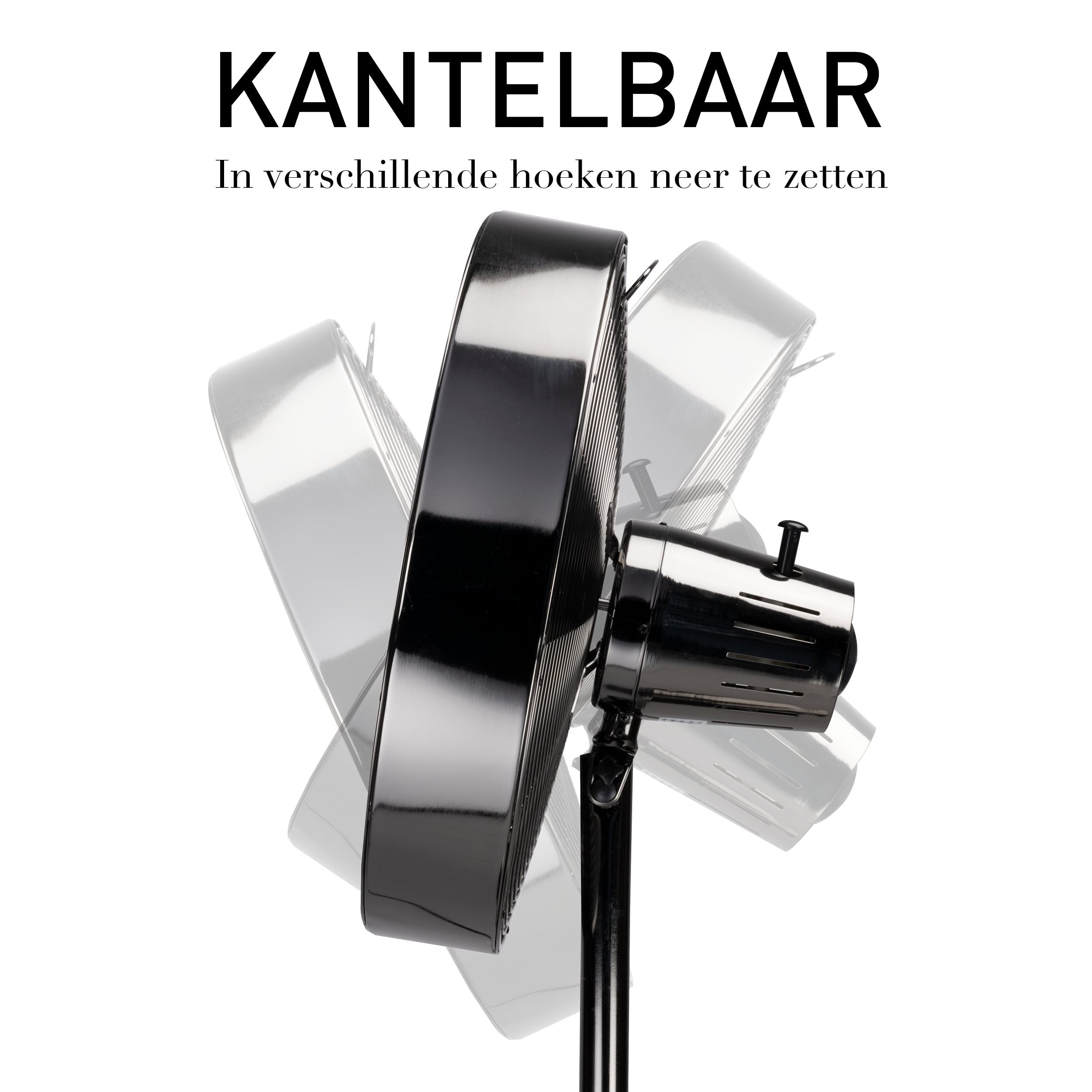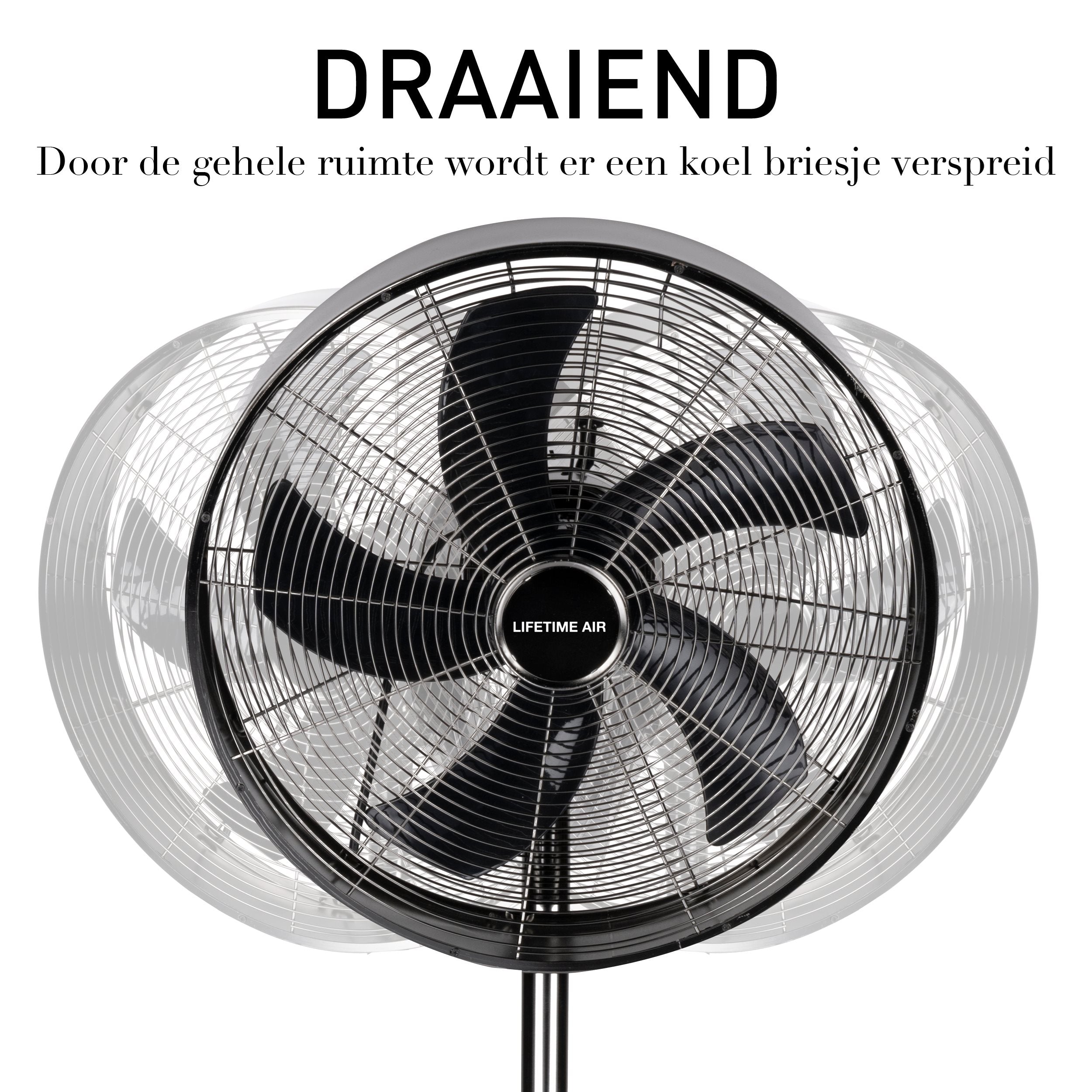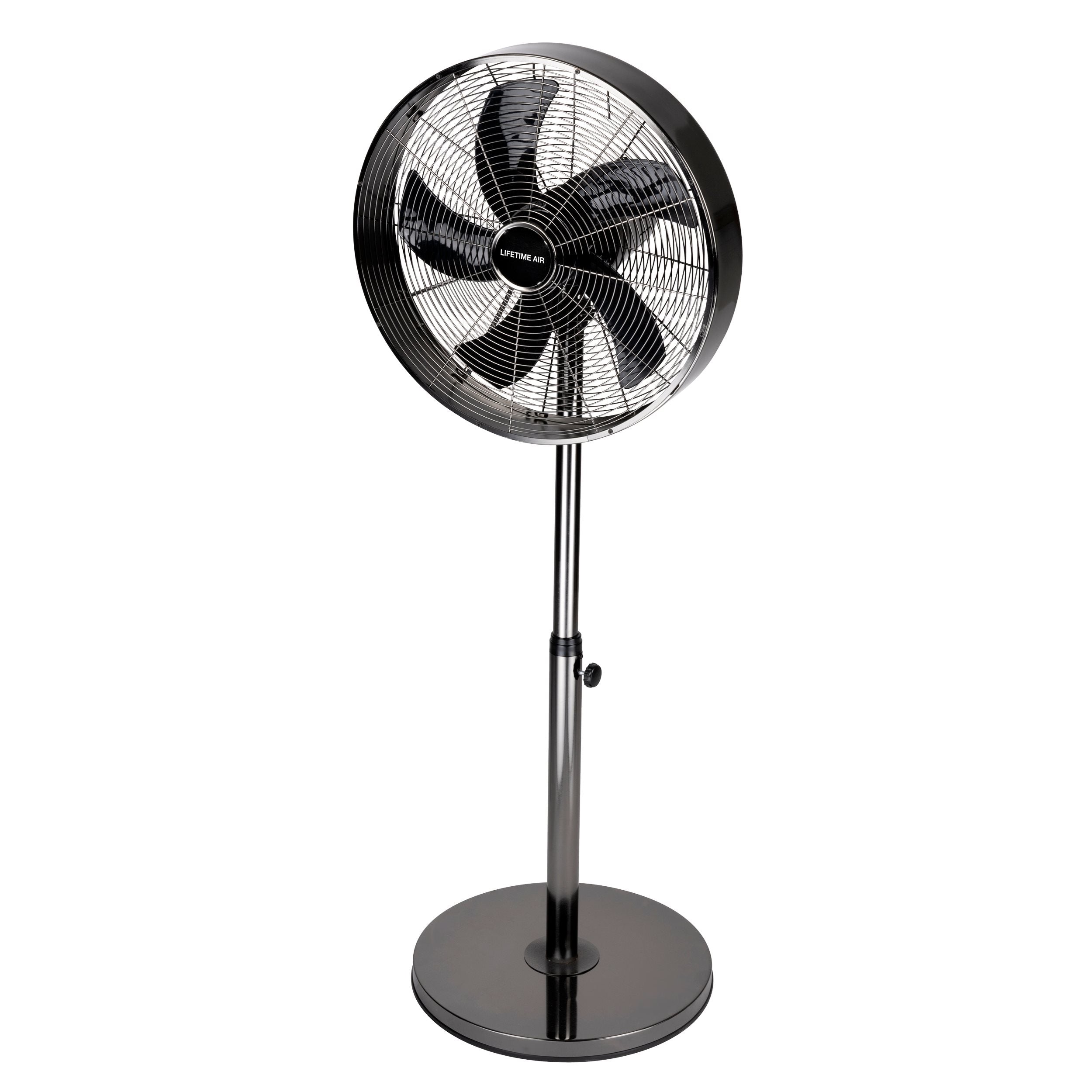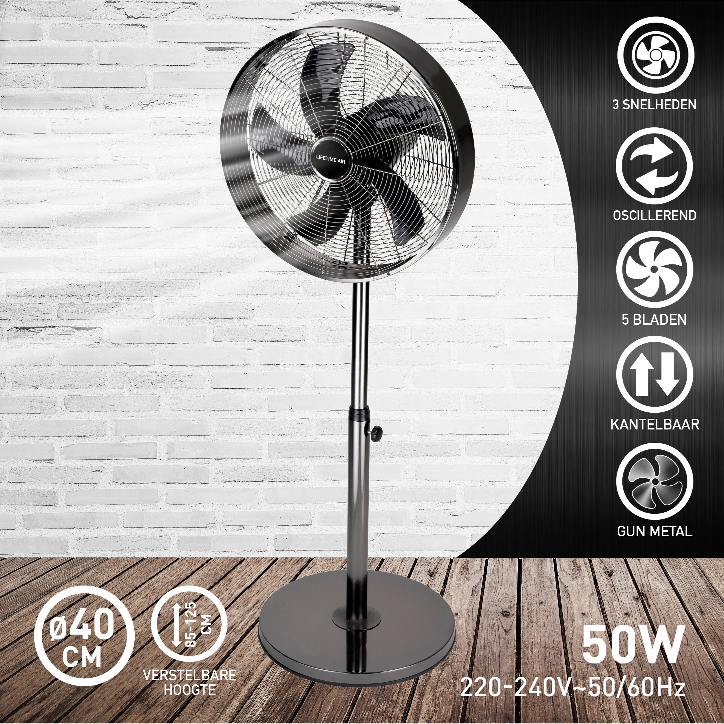 Met de Lifetime Air statiefventilator in zilver zorg je in de warmere maanden voor wat extra verkoeling in jouw werk-, woon- of slaapkamer. De staande ventilator is in hoogte verstelbaar van 85 tot maximaal 110 centimeter. Dankzij een ronde korf met een diameter van 40 centimeter wordt koele lucht gelijkmatig door de kamer verdeeld. De ventilator heeft 3 naar eigen voorkeur instelbare snelheden, een oscillerende functie en is kantelbaar in een gewenste hoek. Dankzij het corossie bestendige materiaal gaat de ventilator jaren mee zonder beschadigd te raken.