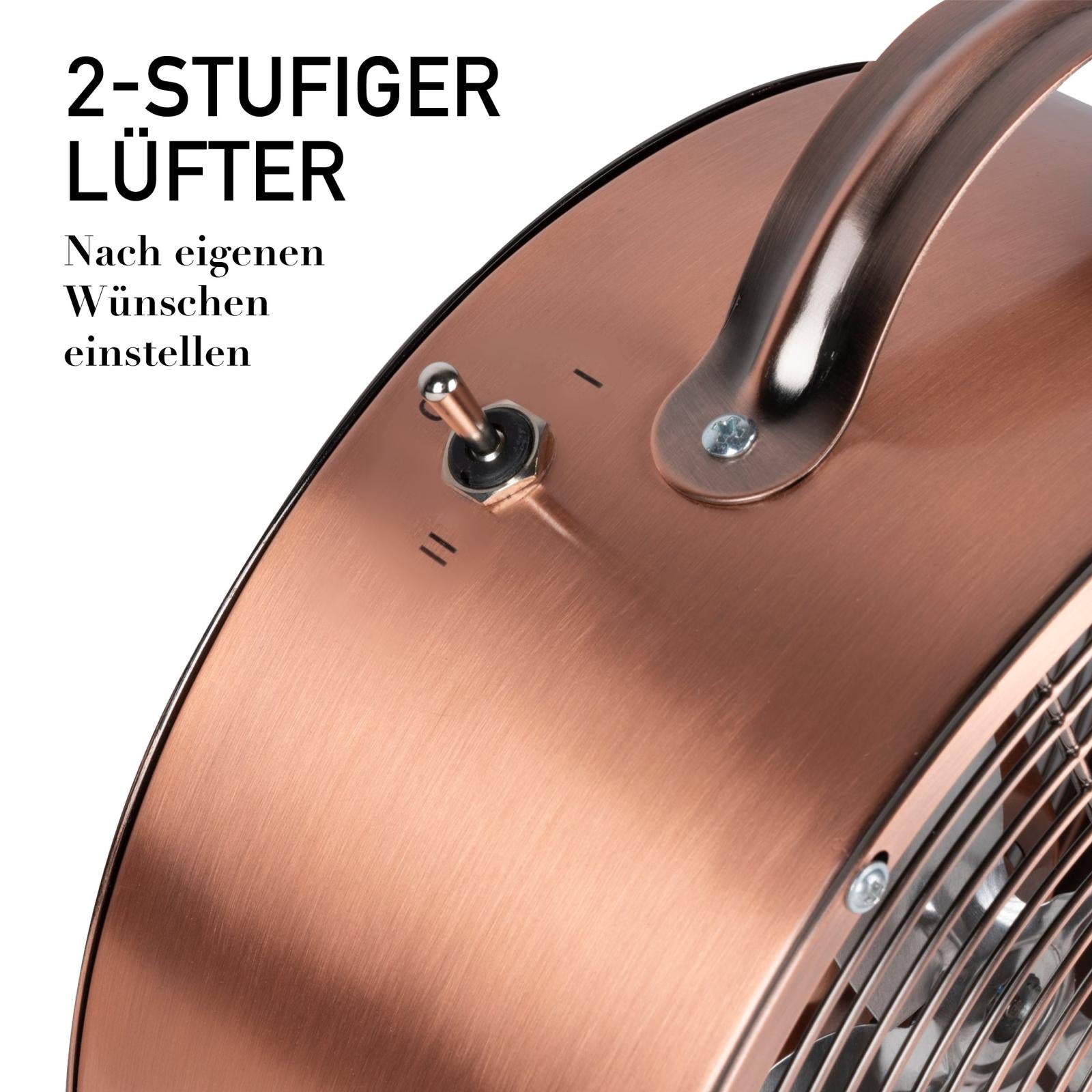 Ben je op zoek naar een kleine en toch effectieve tafelventilator met een modern ontwerp? Dan is de Lifetime Air tafel ventilator in koper perfect voor jou. De mini ventilator heeft 2 snelheden die je naar eigen voorkeur in kunt stellen voor een matig tot hard verkoelend briesje. Zo hou je zelfs op de warmste dagen van het jaar het hoofd koel tijdens zelfs de zwaarste werk of school gerelateerde taken. Daarnaast past de bureau ventilator met zijn moderne ontwerp en kopere kleur perfect in elk interieur.