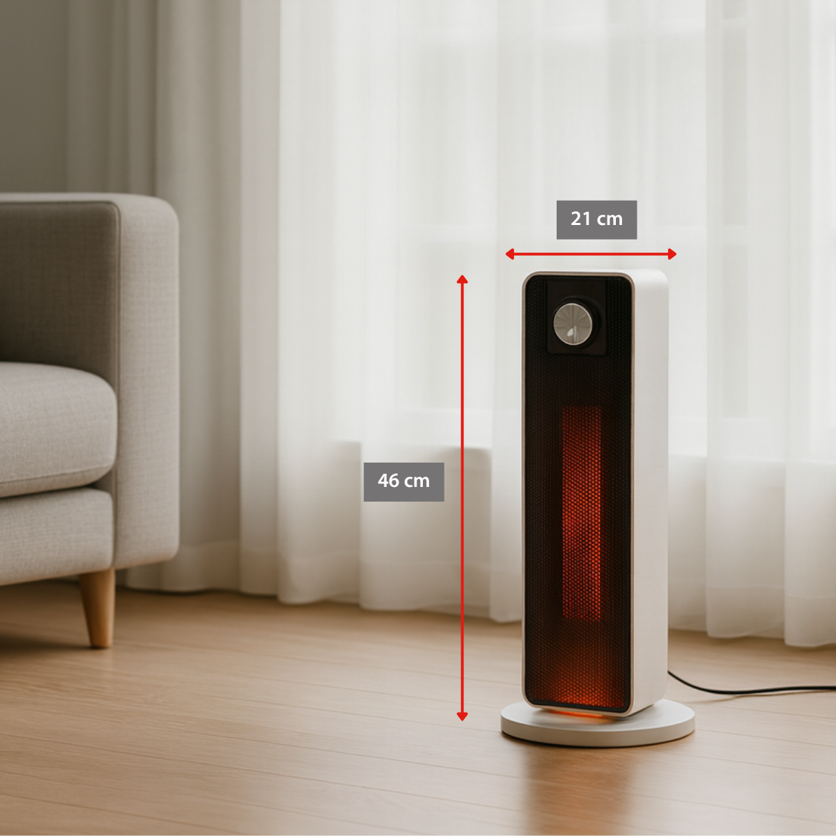 • Keramische technologie: Het PTC keramische verwarmingselement zorgt voor efficiënte en veilige warmteafgifte, zonder de lucht uit te drogen.