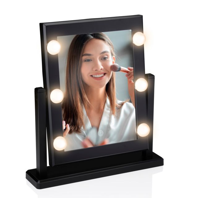 Je make up zit het mooiste wanneer je het kunt aanbrengen met de juiste verlichting. Deze spiegel staand van Touch of Beauty met verlichting heeft 6 heldere LED lampen die instelbaar zijn in zowel warm wit als koud wit licht. Aan de voorkant van de spiegel zit een knop waarmee je de keuze kunt maken tussen de verschillende soorten licht. De spiegel is batterij bediend en heeft 4 AA batterijen nodig om te functioneren (niet inbegrepen). De make up spiegel heeft het uiterlijk van een typische hollywood spiegel met de 6 heldere led lichten. Ook is de make up spiegel 180 graden kantelbaar.