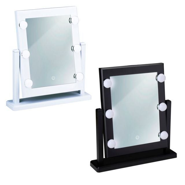 Je make up zit het mooiste wanneer je het kunt aanbrengen met de juiste verlichting. Deze spiegel staand van Touch of Beauty met verlichting heeft 6 heldere LED lampen die instelbaar zijn in zowel warm wit als koud wit licht. Aan de voorkant van de spiegel zit een knop waarmee je de keuze kunt maken tussen de verschillende soorten licht. De spiegel is batterij bediend en heeft 4 AA batterijen nodig om te functioneren (niet inbegrepen). De make up spiegel heeft het uiterlijk van een typische hollywood spiegel met de 6 heldere led lichten. Ook is de make up spiegel 180 graden kantelbaar.