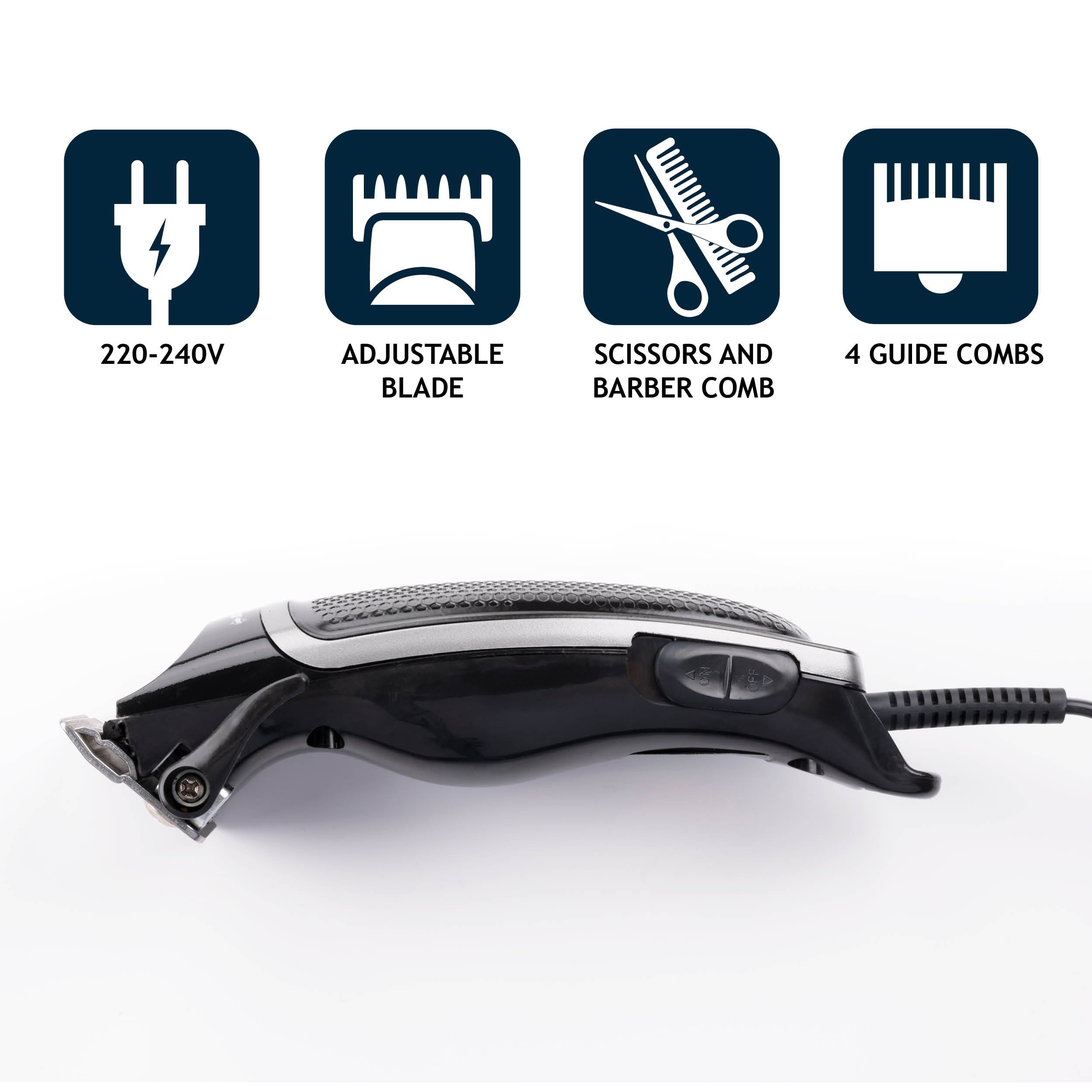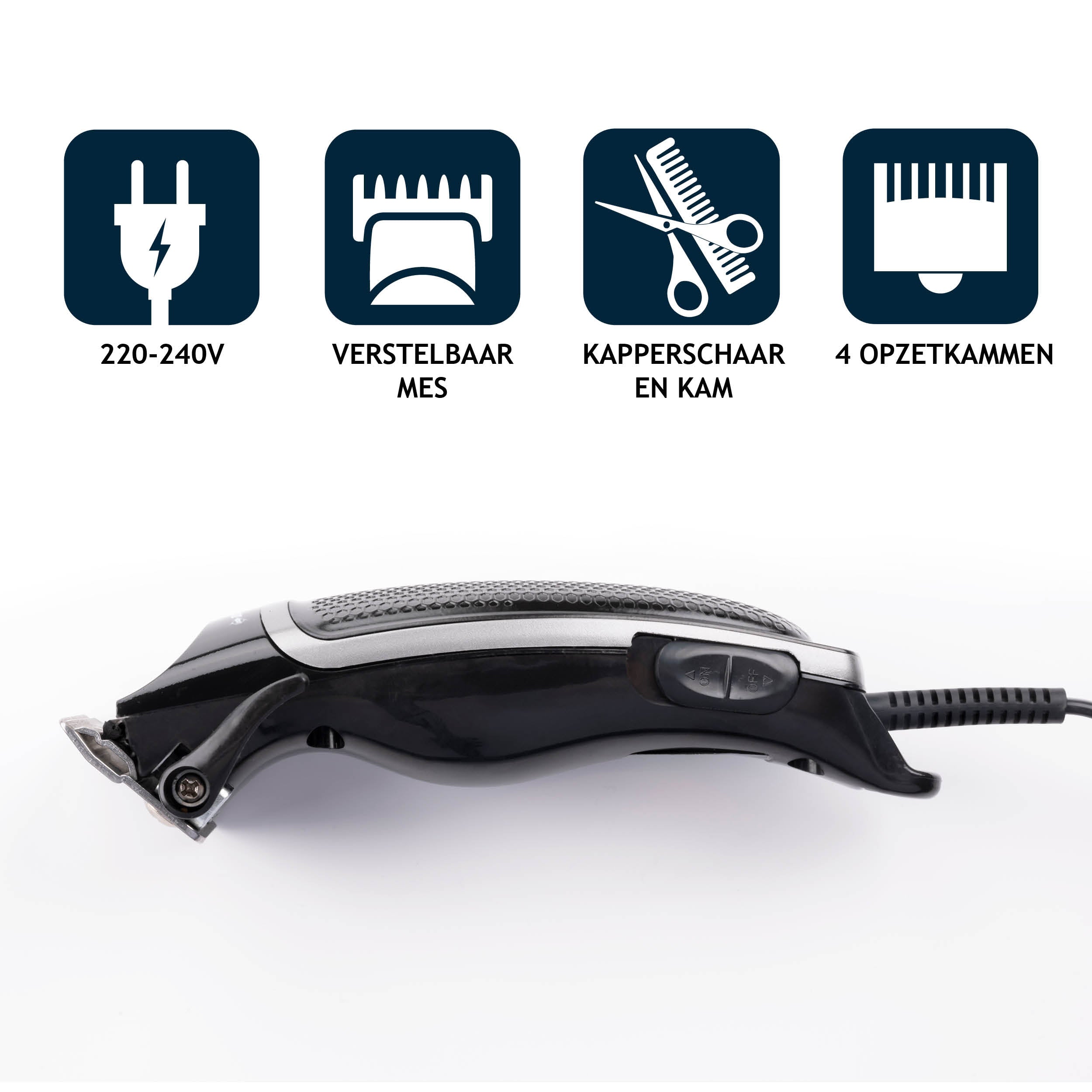 Het is altijd handig als je zelf je kapsel kunt bijwerken. Met deze professionele tondeuse van Dunlop met krachtige motor bespaar je heel wat kapperskosten. Je kunt je haar zo kort knippen als je zelf wilt met de 4 opzetkammen van verschillende formaten. Bij deze tondeuseset hoort ook een kappersschaar en een kam zodat je diverse stijlen aan kunt. Het apparaat is gemakkelijk schoon te maken met het speciale reinigingsborsteltje.