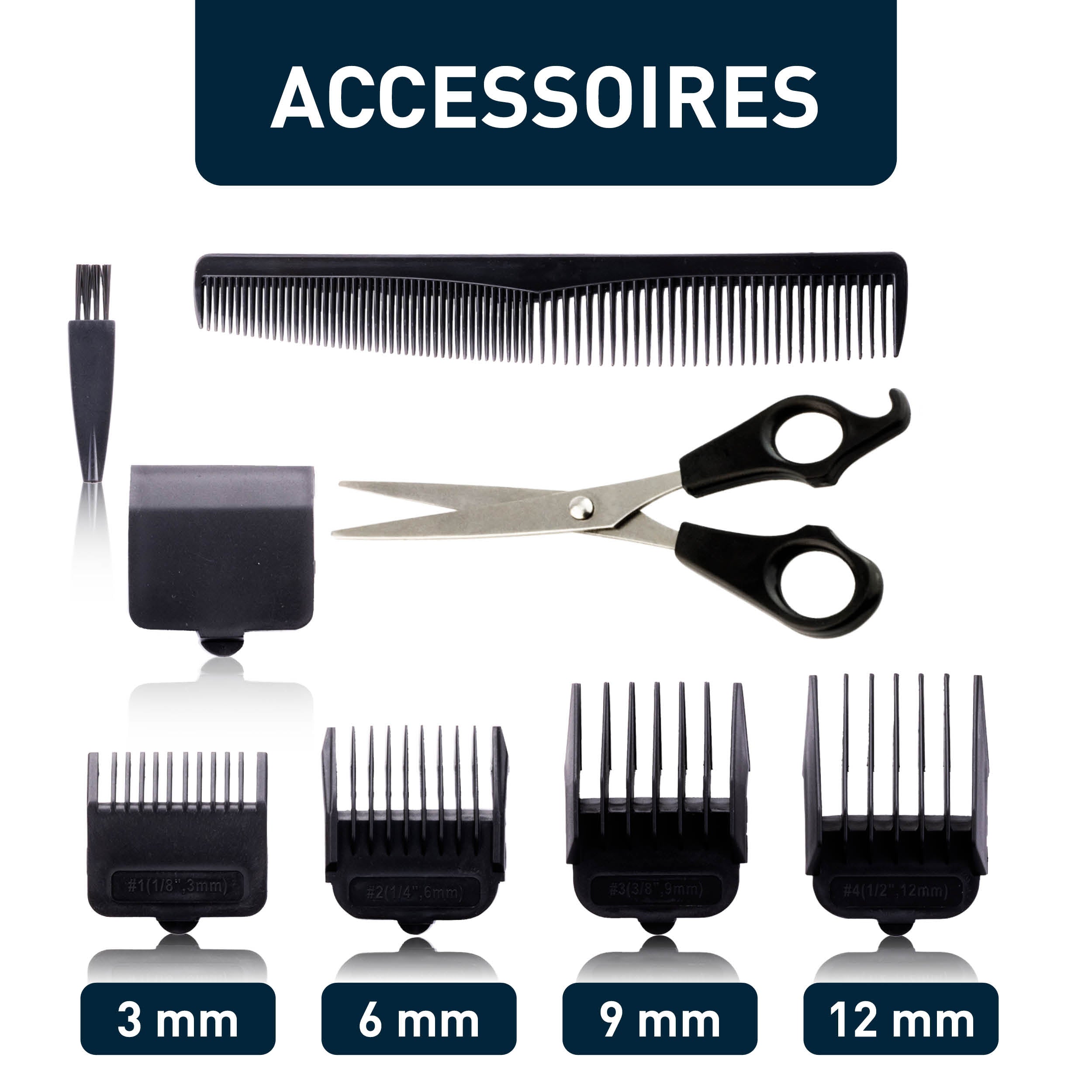Het ergonomische design van deze tondeuse zorgt voor een groot gebruiksgemak. Het apparaat heeft een krachtige motor met een vermogen van 3 Watt. Bij de tondeuse horen 4 opzetkammen. De kleinste opzetkam geeft een haarlengte van 3 millimeter. De tweede opzetkam geeft een haarlengte van 6 millimeter en de derde 9 millimeter. Met de grootste opzetkam krijg je een haarlengte van 12 millimeter.