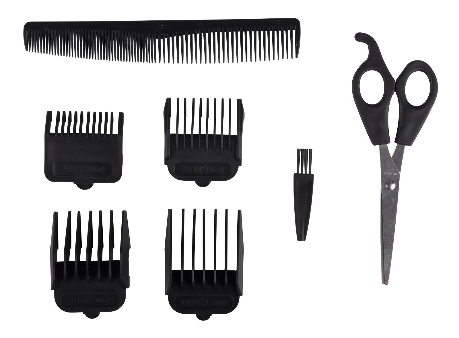 - Incl. 4 geleidingskammen, kam, reinigingsborstel, schaar, Reinigingsborsteltje