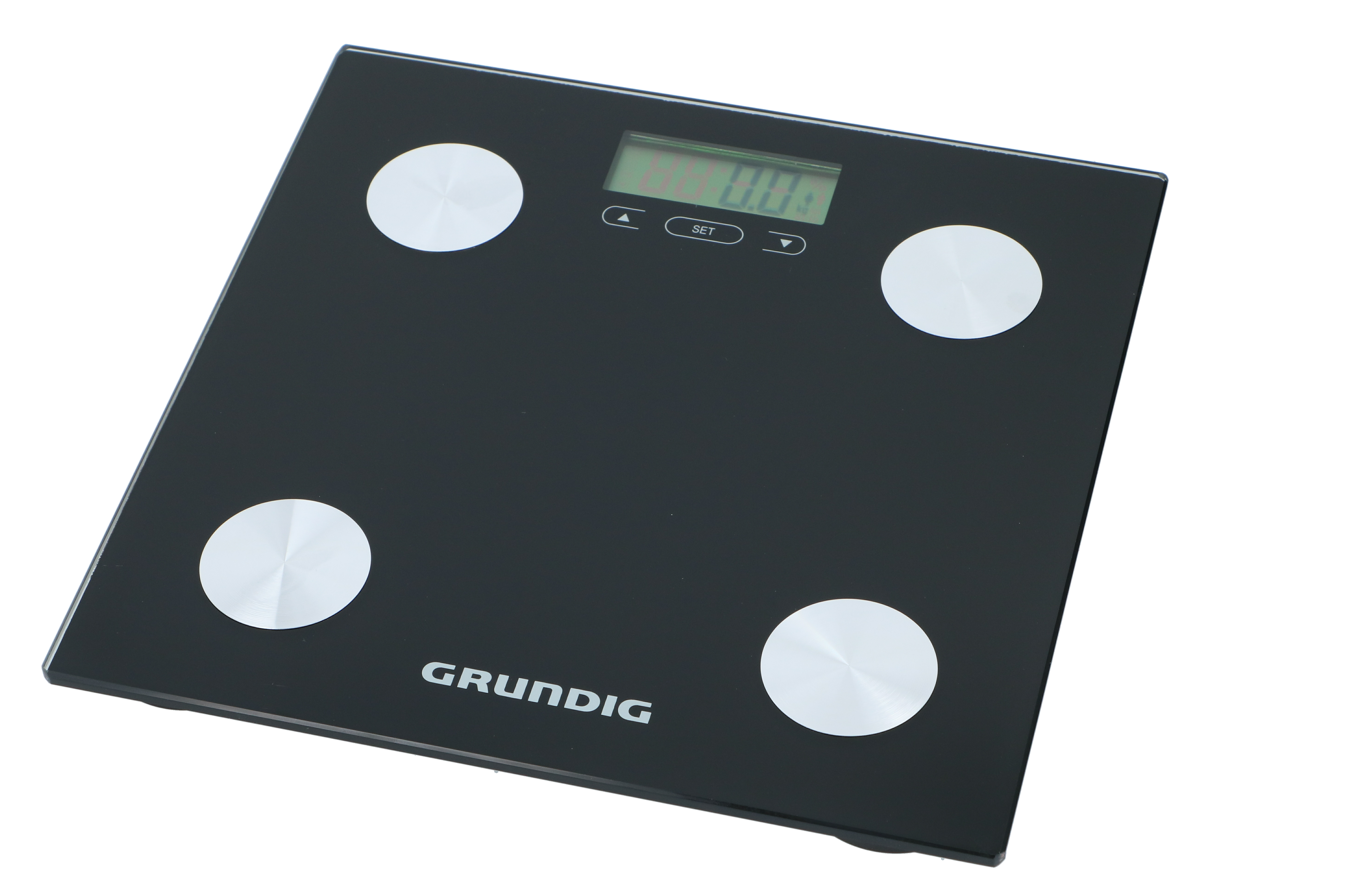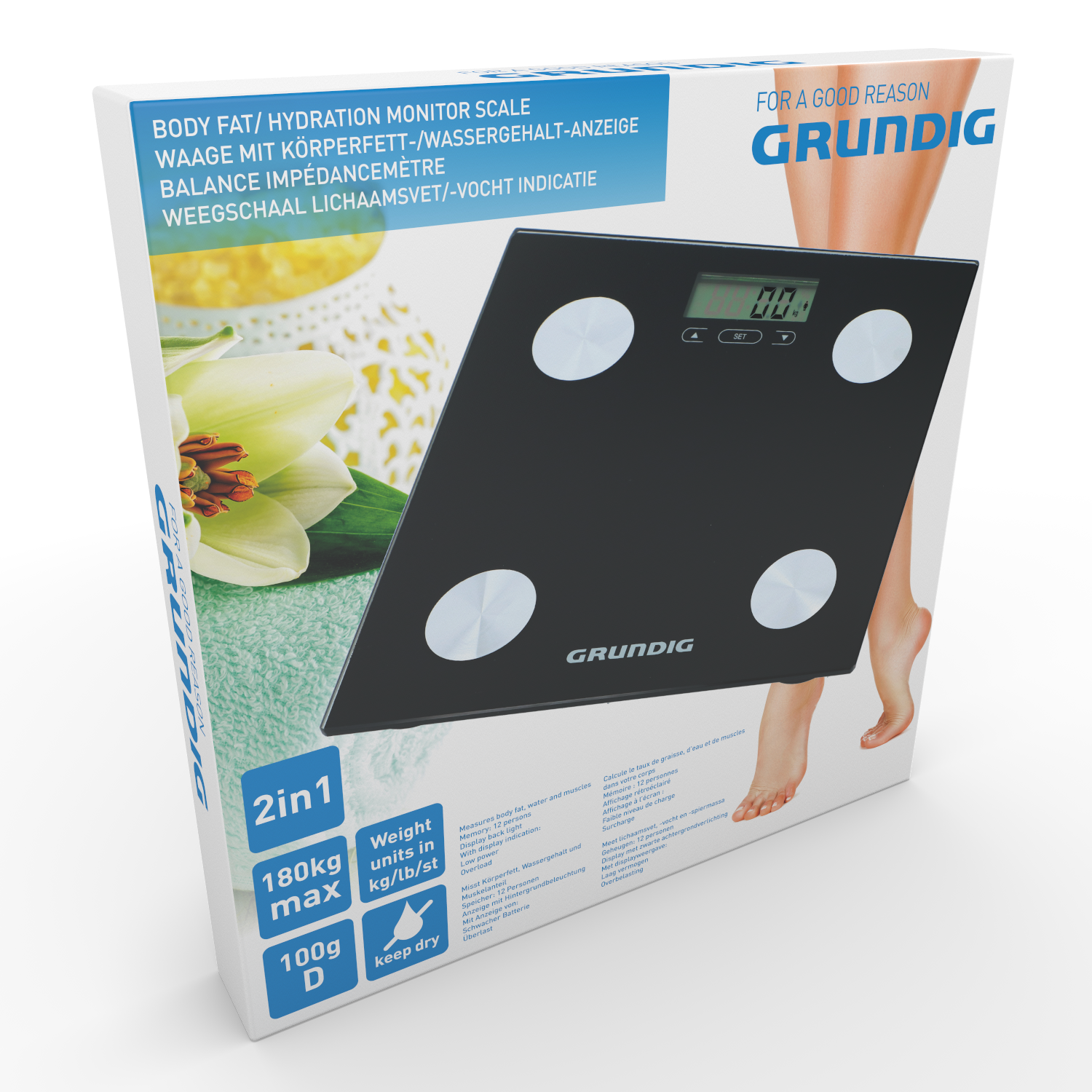 Je gewicht geeft inzicht in je gezondheid. Met deze digitale personenweegschaal van Grundig zie je niet alleen hoeveel je weegt; de weegschaal geeft ook een lichaamsanalyse van vet, spieren, botten en vocht. Bovendien kan hij voor 12 personen de details onthouden. Voor een goed meetresultaat zet je het apparaat op een vlakke, harde ondergrond en stap je met blote, droge voeten op het zwarte, glazen oppervlak.