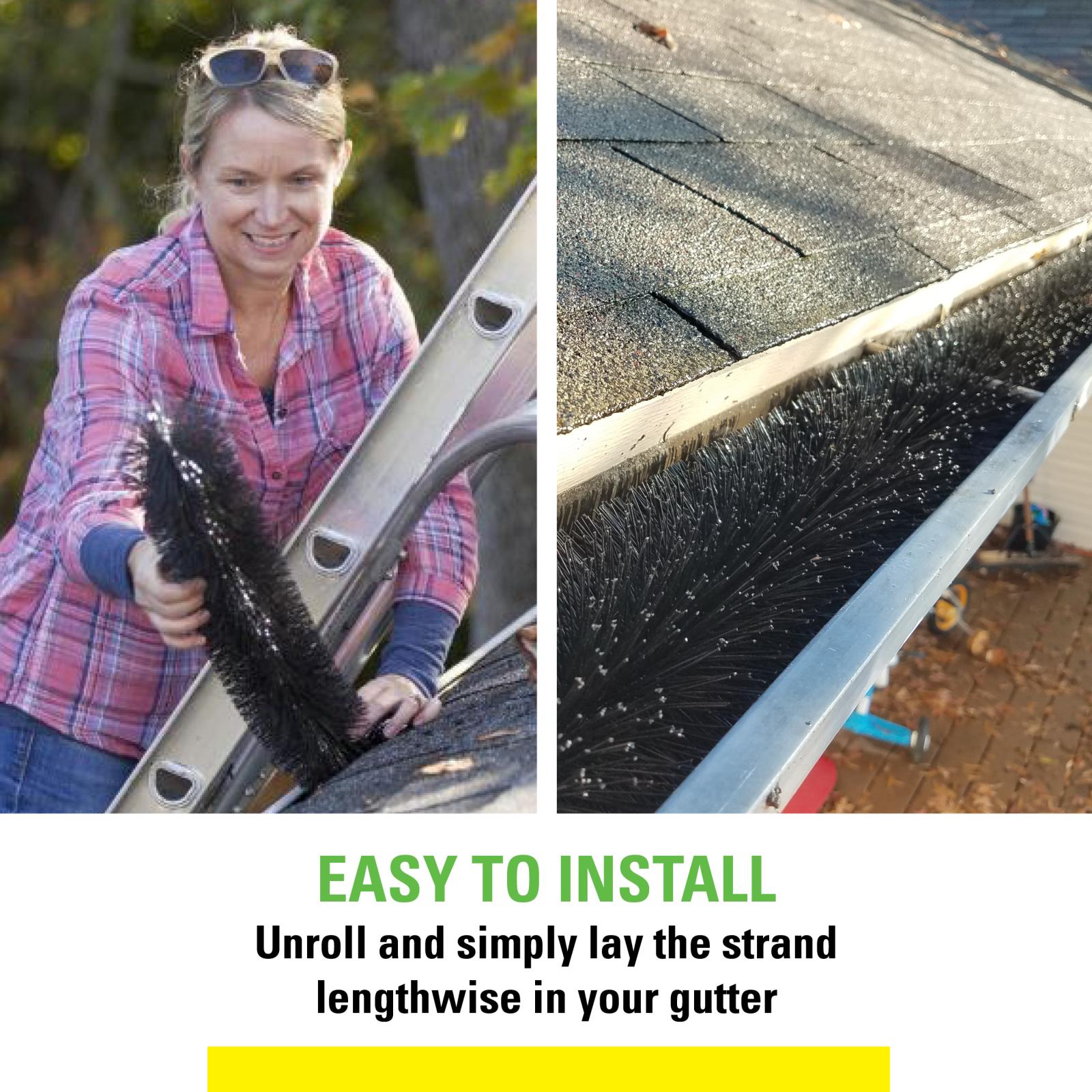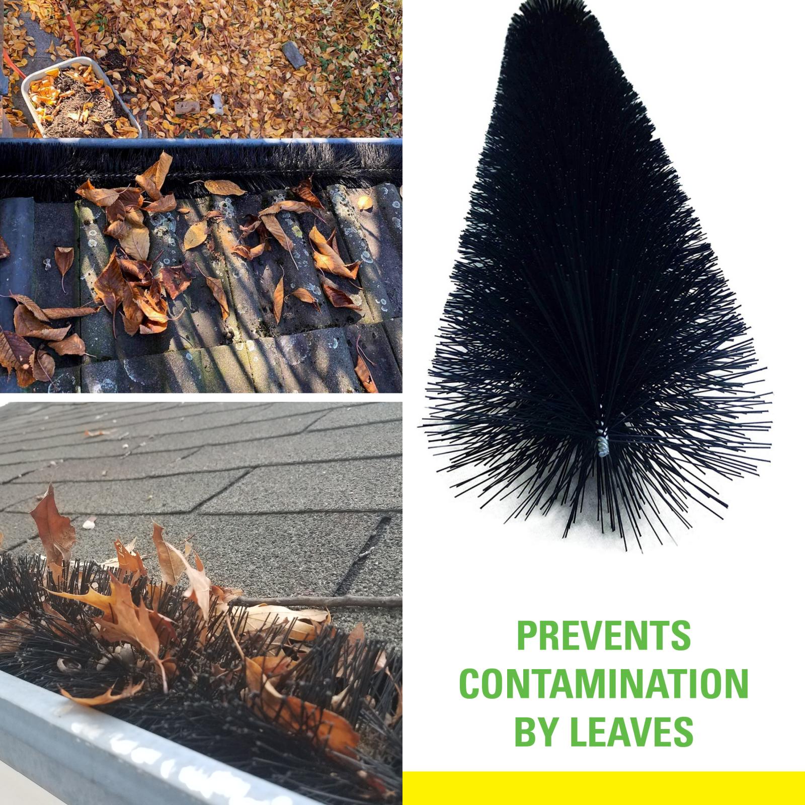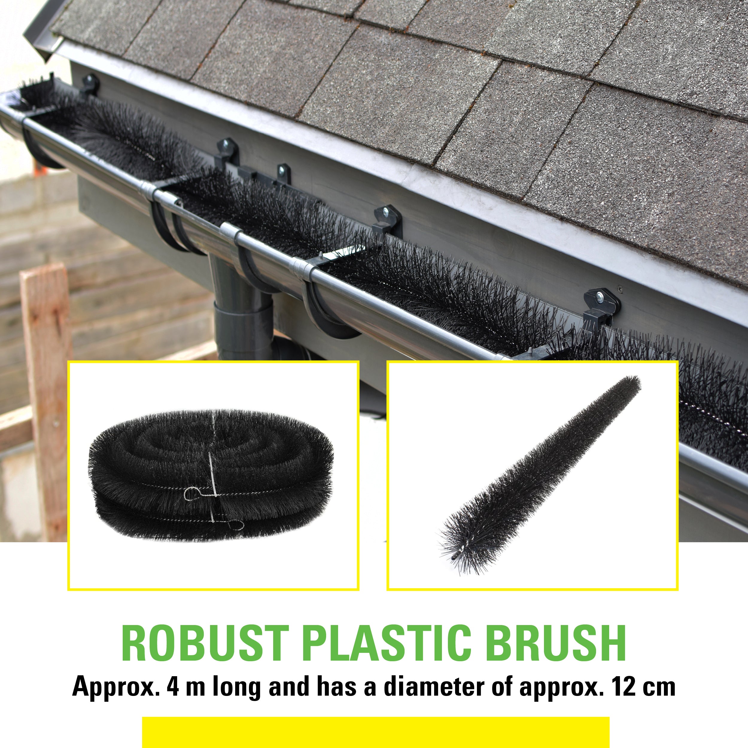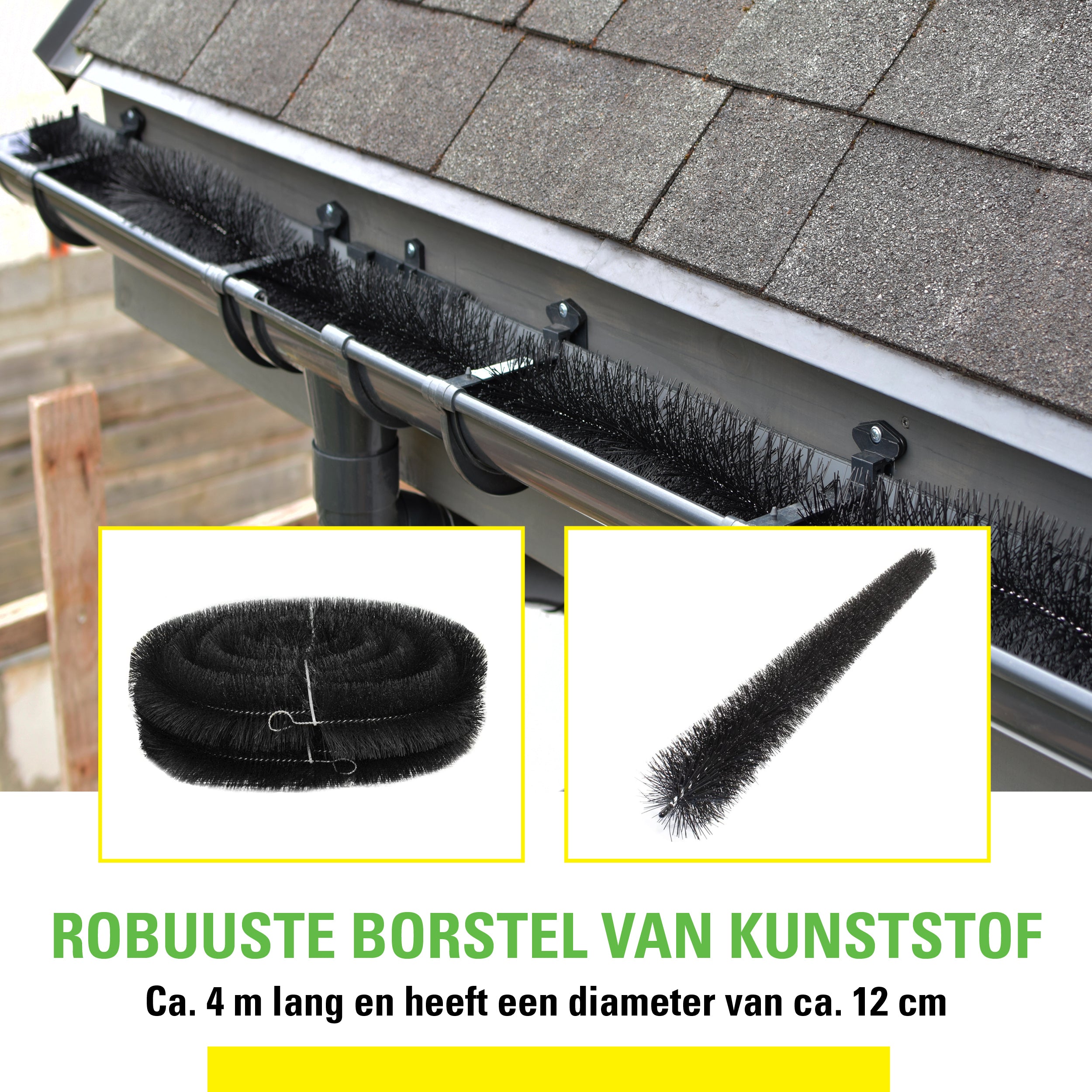 Met deze dakgootbescherming, vanwege de gelijkenis ook wel dakgoot-egel genoemd, voorkom je problemen met je dakgoot en verstopping van je regenpijpen. Je rolt de dakgootborstel of bladvanger uit en legt de streng eenvoudig weg in de lengte in je dakgoot. De duizenden kunststof haren zullen alle bladeren en ander vuil tegenhouden, zodat het regenwater kan blijven stromen.