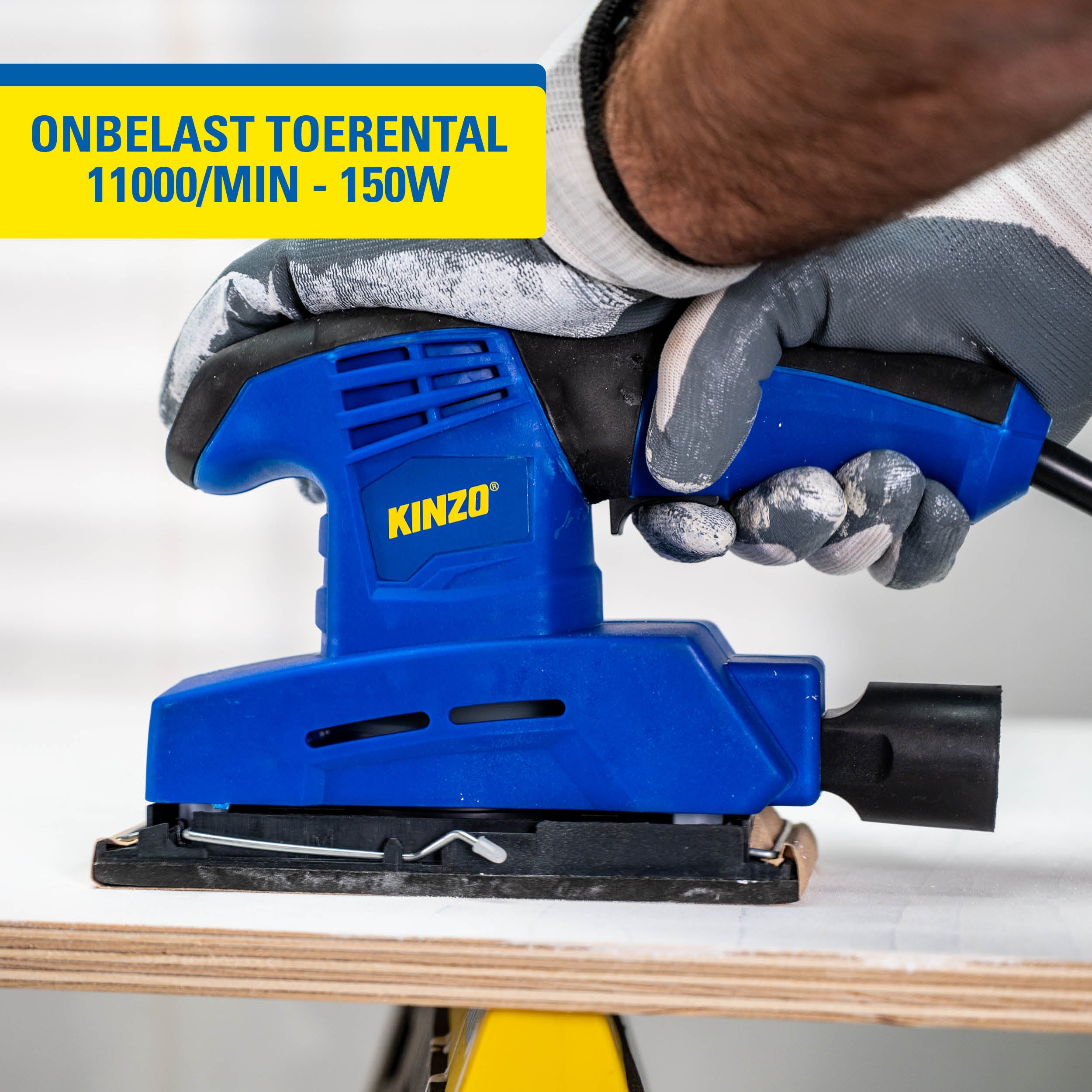 De Kinzo vlakschuurmachine is perfect voor de fijnere afwerk klussen en houtbewerking. Denk daarbij aan het schuren van houten meubels, tafelbladen en deuren. De grootte van de schuurzool is daarin erg belangrijk. Met een schuurzooloppervlakte van 187 x 90 mm is de Kinzo schuurmachine uitermate geschikt voor het schuren van grote oppervlaktes.