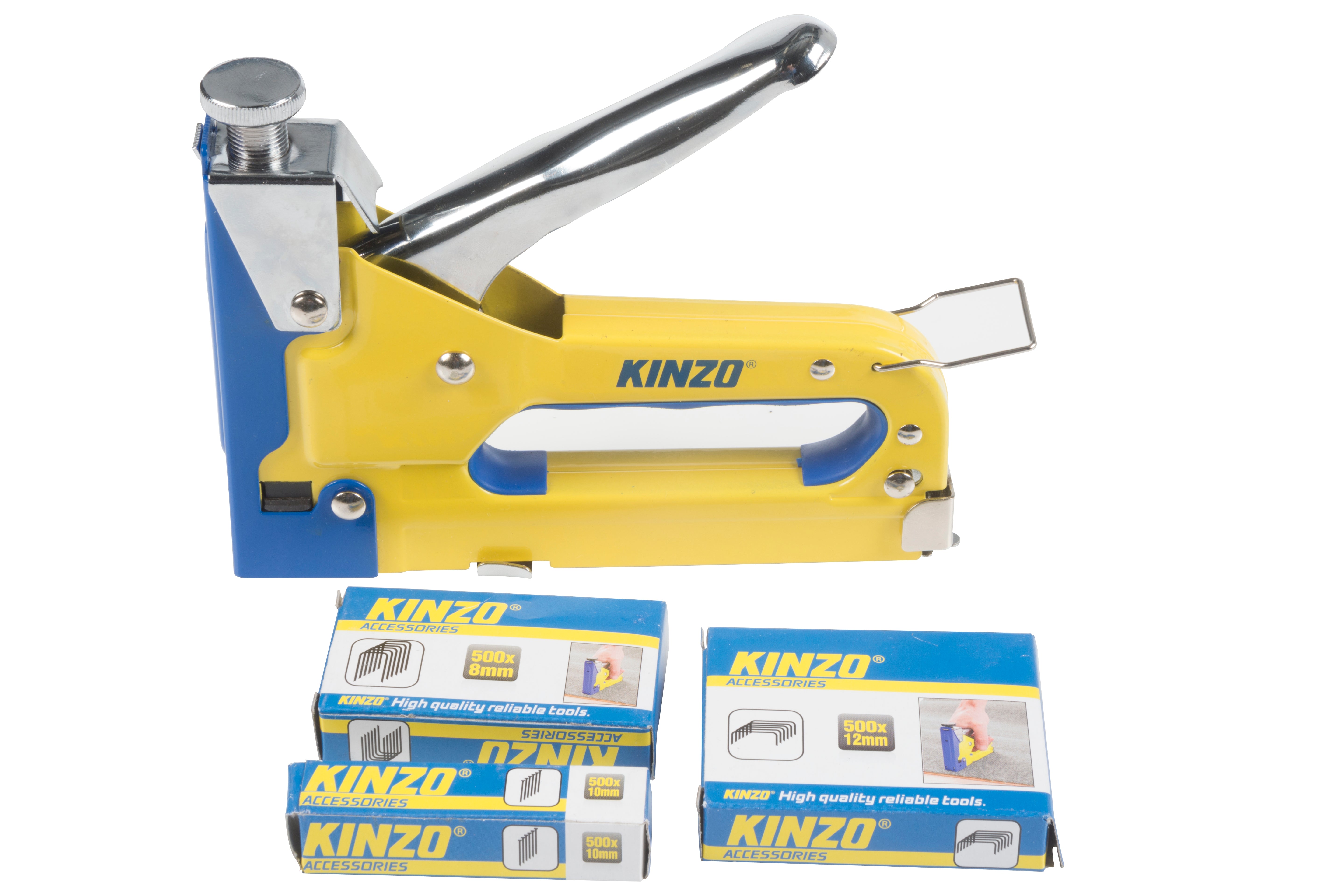 Een tacker of nietmachine is ideaal voor het nieten van bijvoorbeeld vloerbedekking op een houten ondergrond, meubels stofferen en andere klussen waarbij je iets moet bevestigen. Deze robuuste nieter van Kinzo is traploos instelbaar en gemakkelijk te gebruiken.