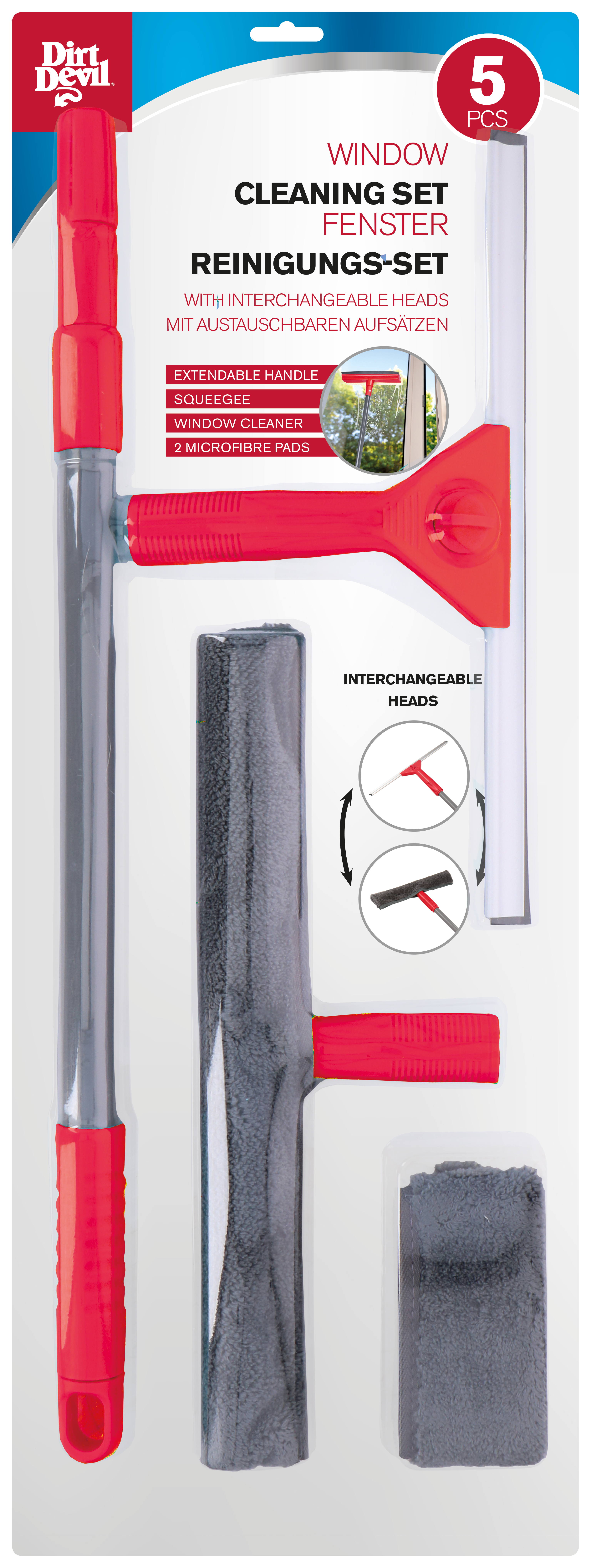 Handig voor de hoge ramen: er zit een uitschuifbare steel bij de set. Bevestig het gewenste kopstuk aan de steel en stel deze in op de gewenste maat: de steel is uitschuifbaar tussen circa 57 en 129 cm.